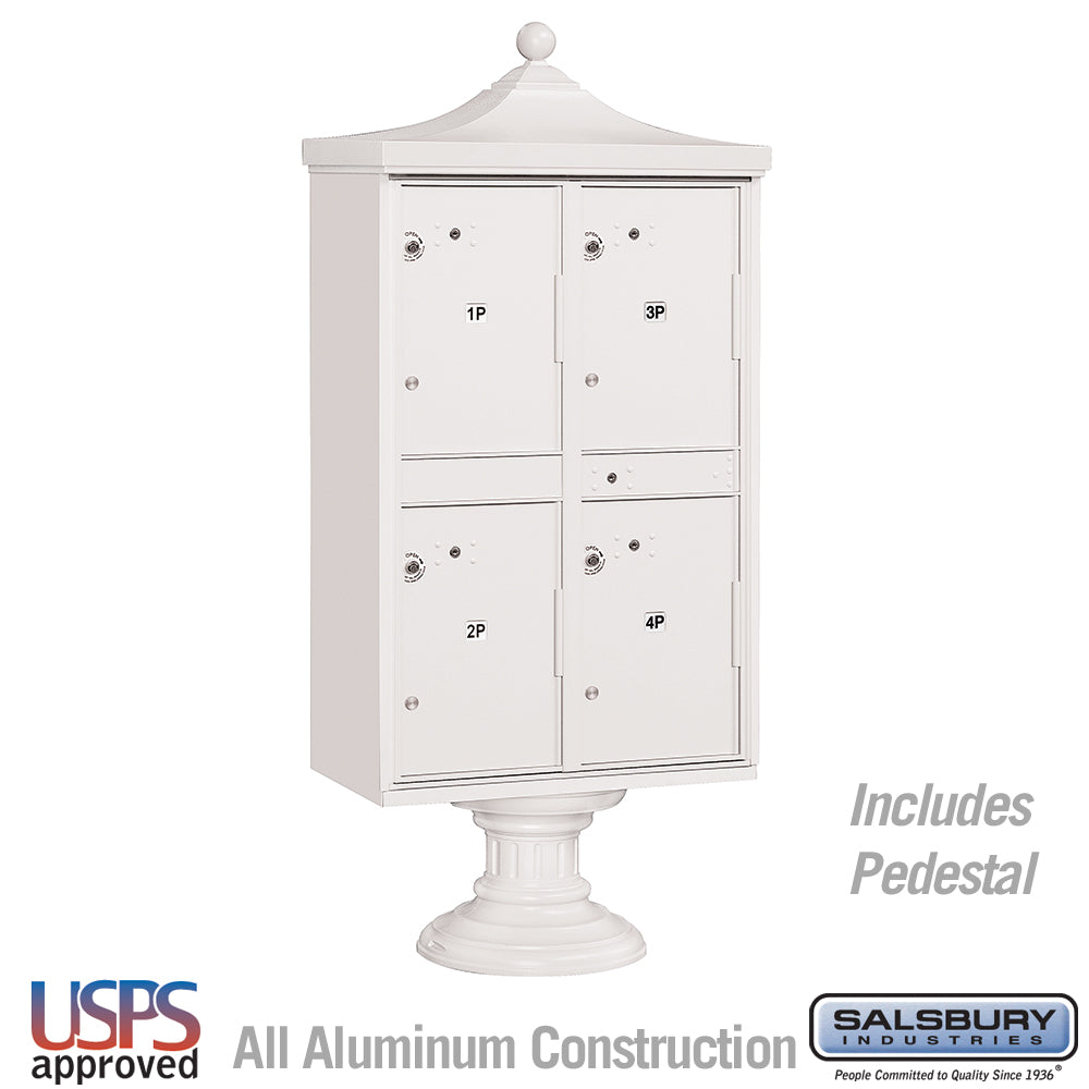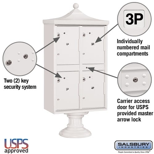 Regency Decorative Outdoor Parcel Locker with 4 Compartments in White and USPS Access