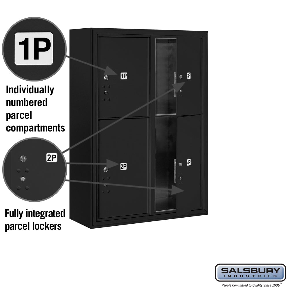 Salsbury Industries 11-Door High Surface Mounted 4C Parcel Locker, 4 Parcel Lockers, Black, USPS Access