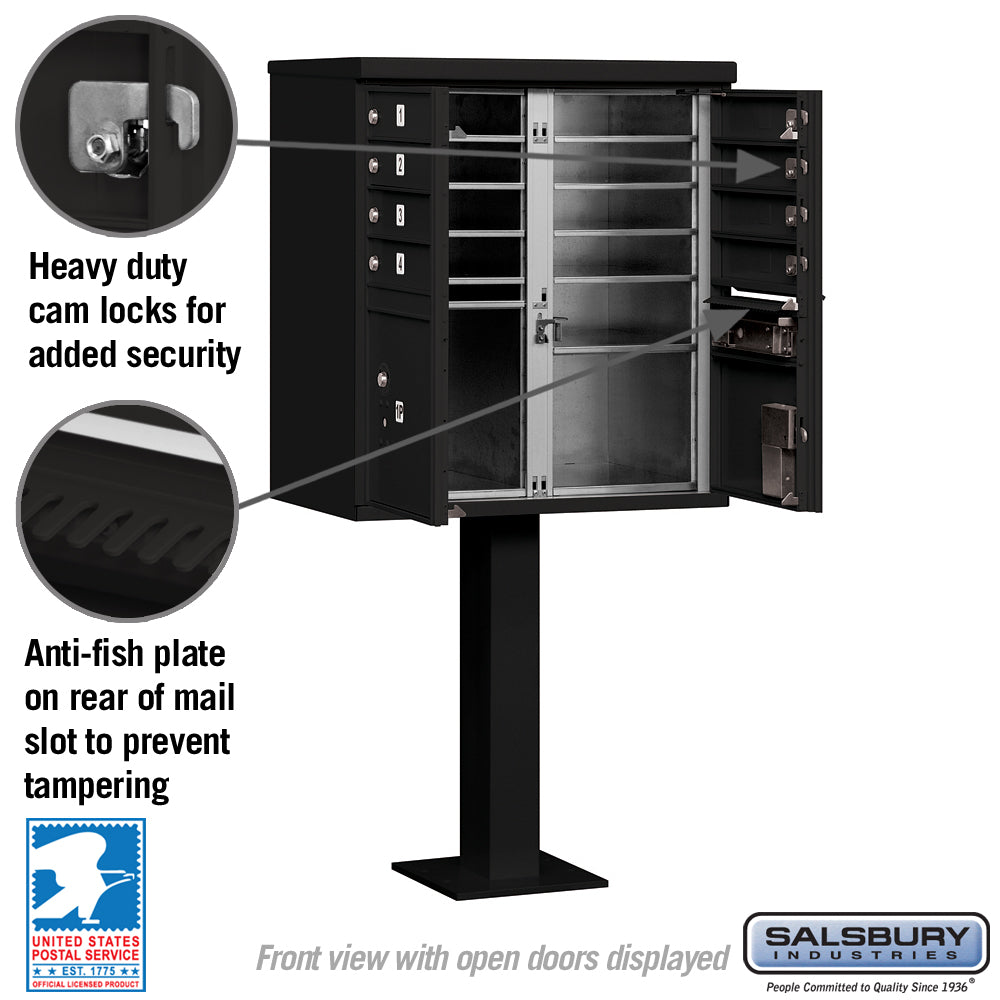 Salsbury Industries Cluster Box Unit, 8 Doors with 2 Parcel Lockers, Black, USPS Access