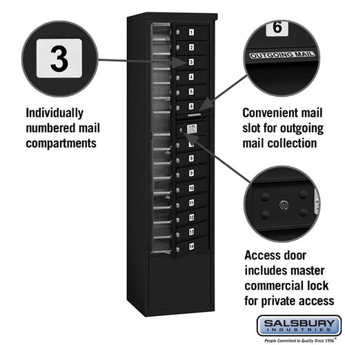 Salsbury Industries Free-Standing 4C Horizontal Mailbox Unit, Maximum Height 72 in, Single Column, 14 Doors, Front-Loading, Private Access