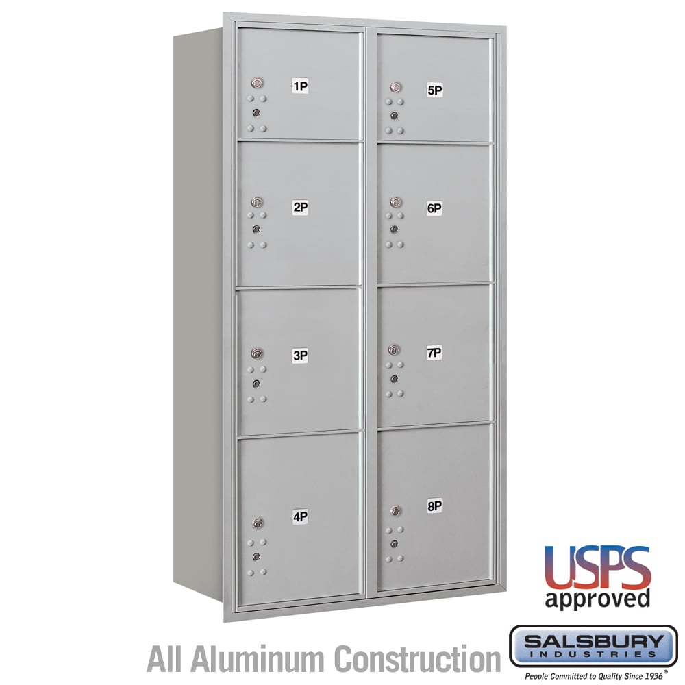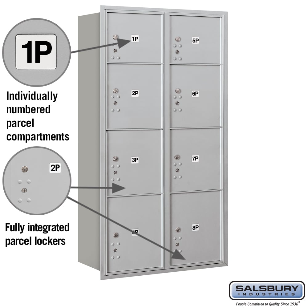 Salsbury Recessed Mounted 4C Horizontal Mailbox with Parcel Lockers, Rear Loading