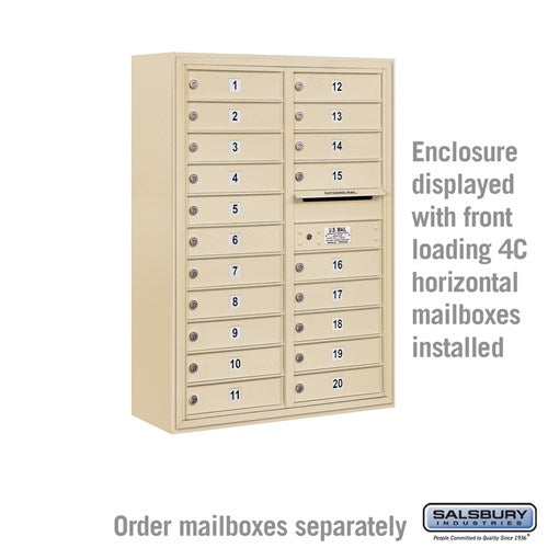 A: This enclosure is designed to mount Salsbury 3700 Series front loading 4C standard and custom horizontal mailboxes.