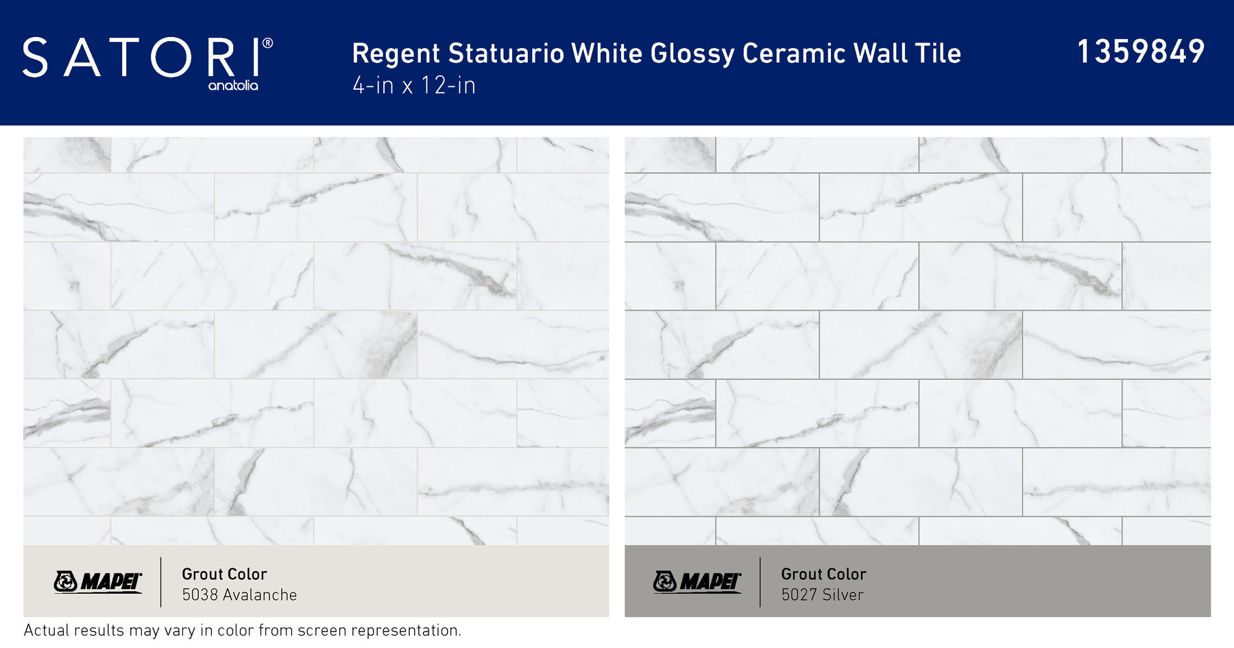 Satori Regent Statuario Glossy 4-in x 12-in Ceramic Marble-Look Wall Tile