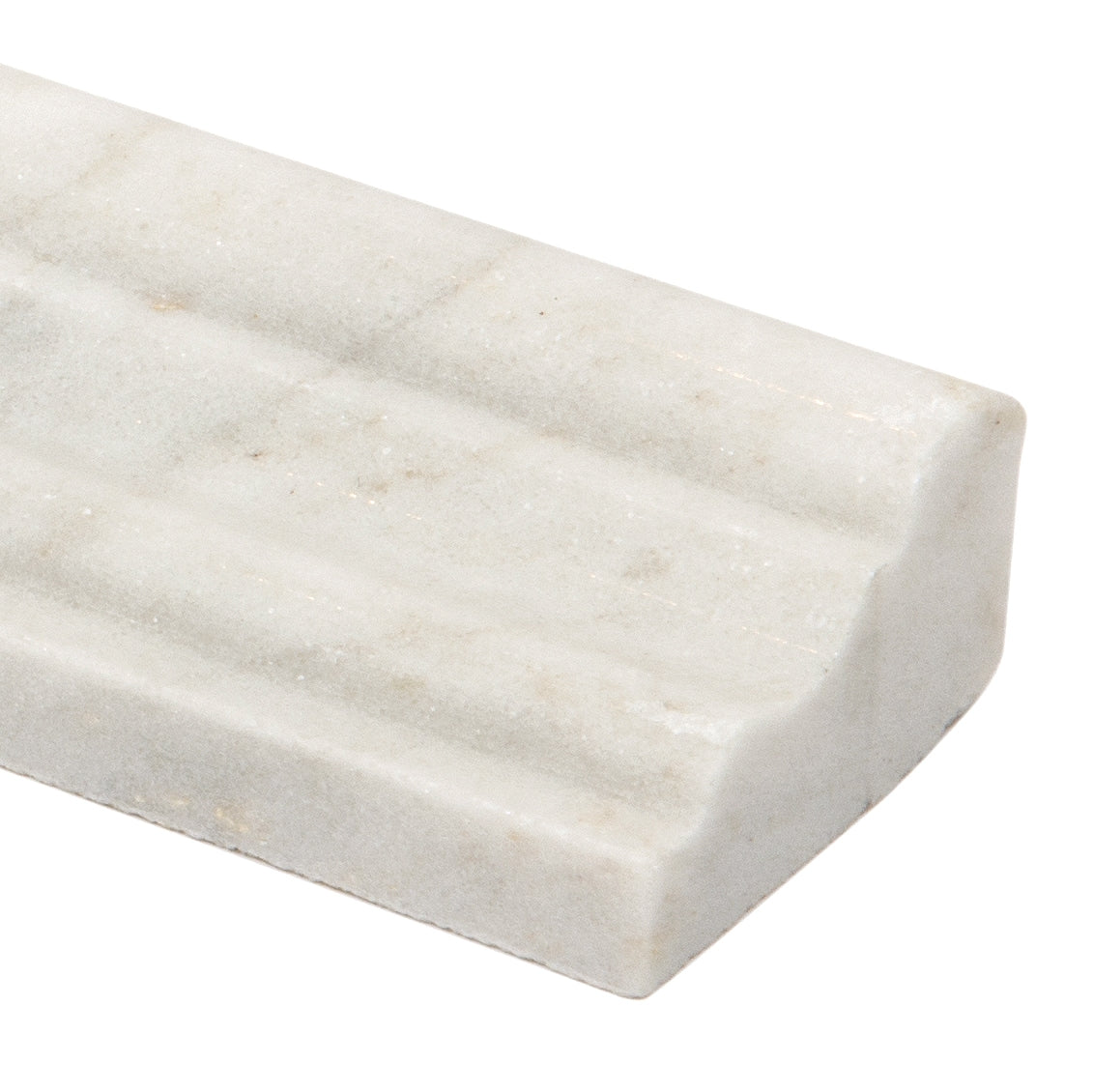 Complete your backsplash or shower with this polished Venatino marble chair rail for a crisp, luxurious finish—add it to your cart today.