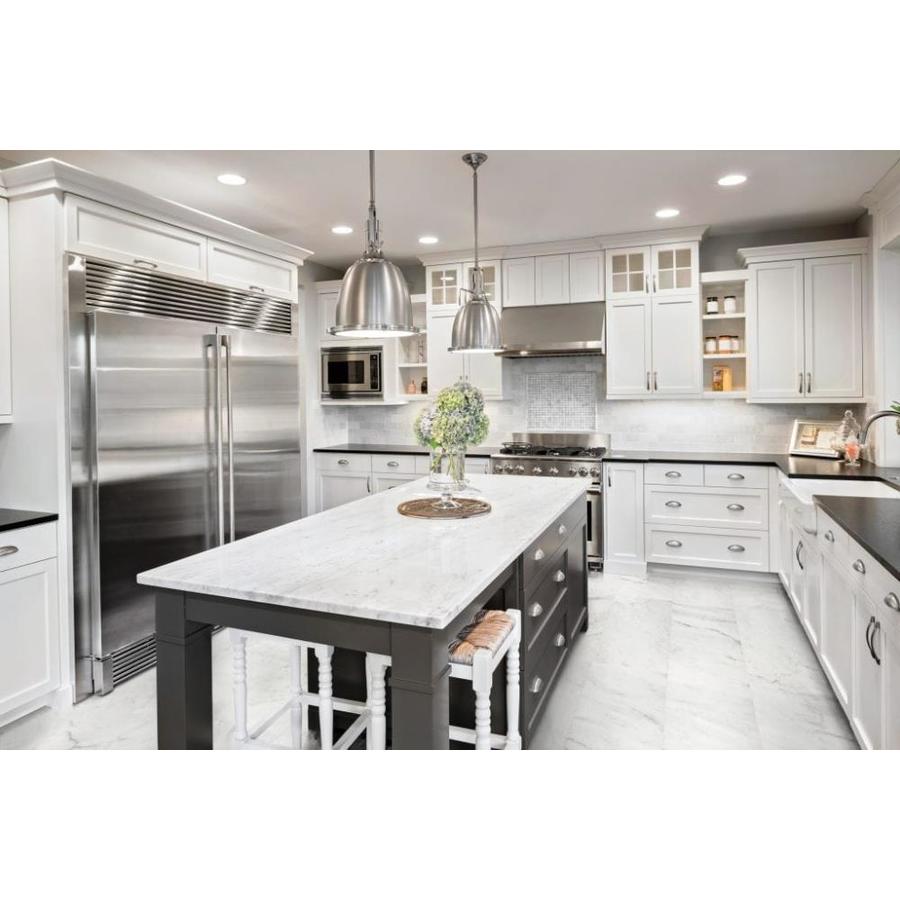 • Elegant Marble Accent: Polished Venatino marble with classic white tones for timeless trim detailing