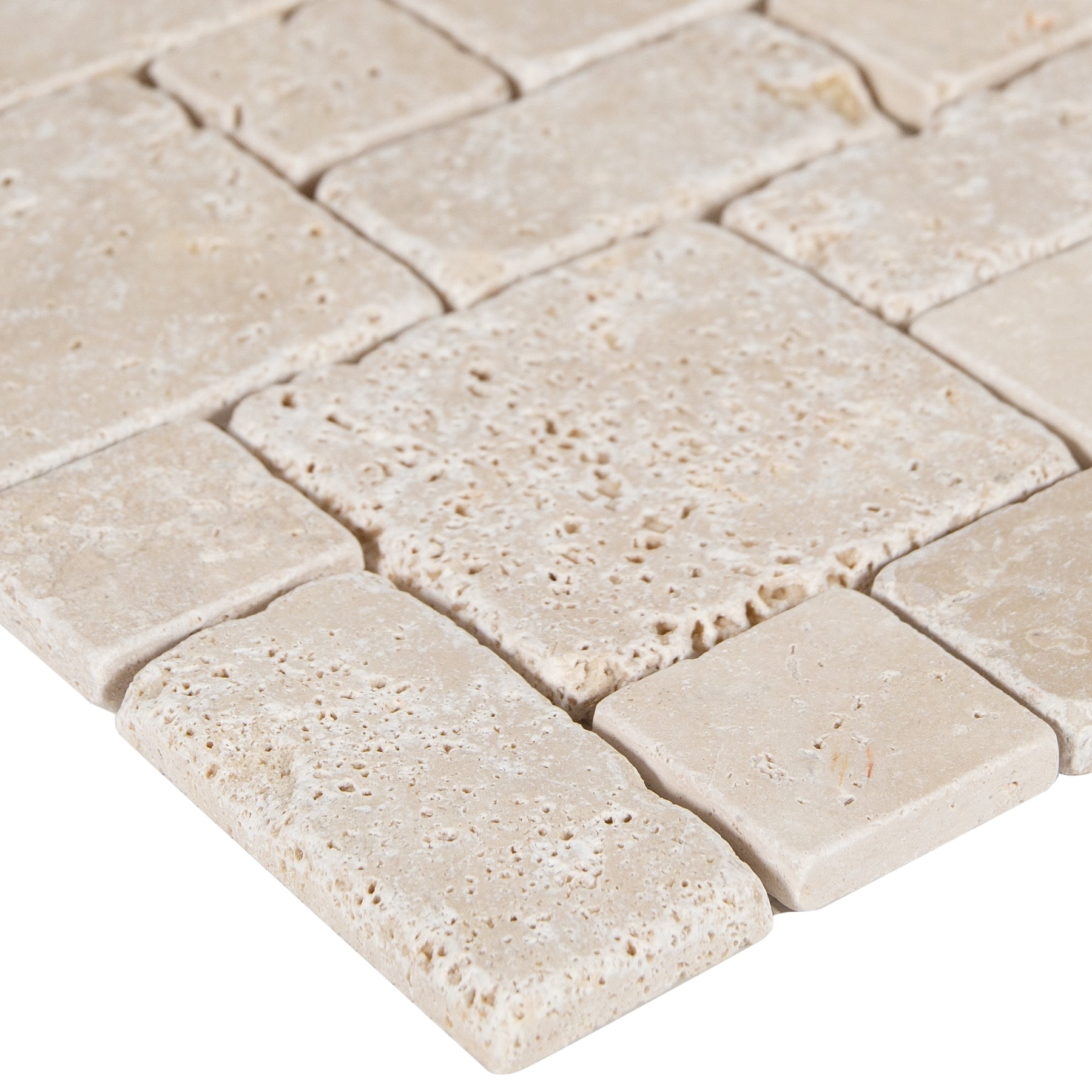 Ivory Honed Travertine Mosaic Floor & Wall Tile, 12 x 12 in