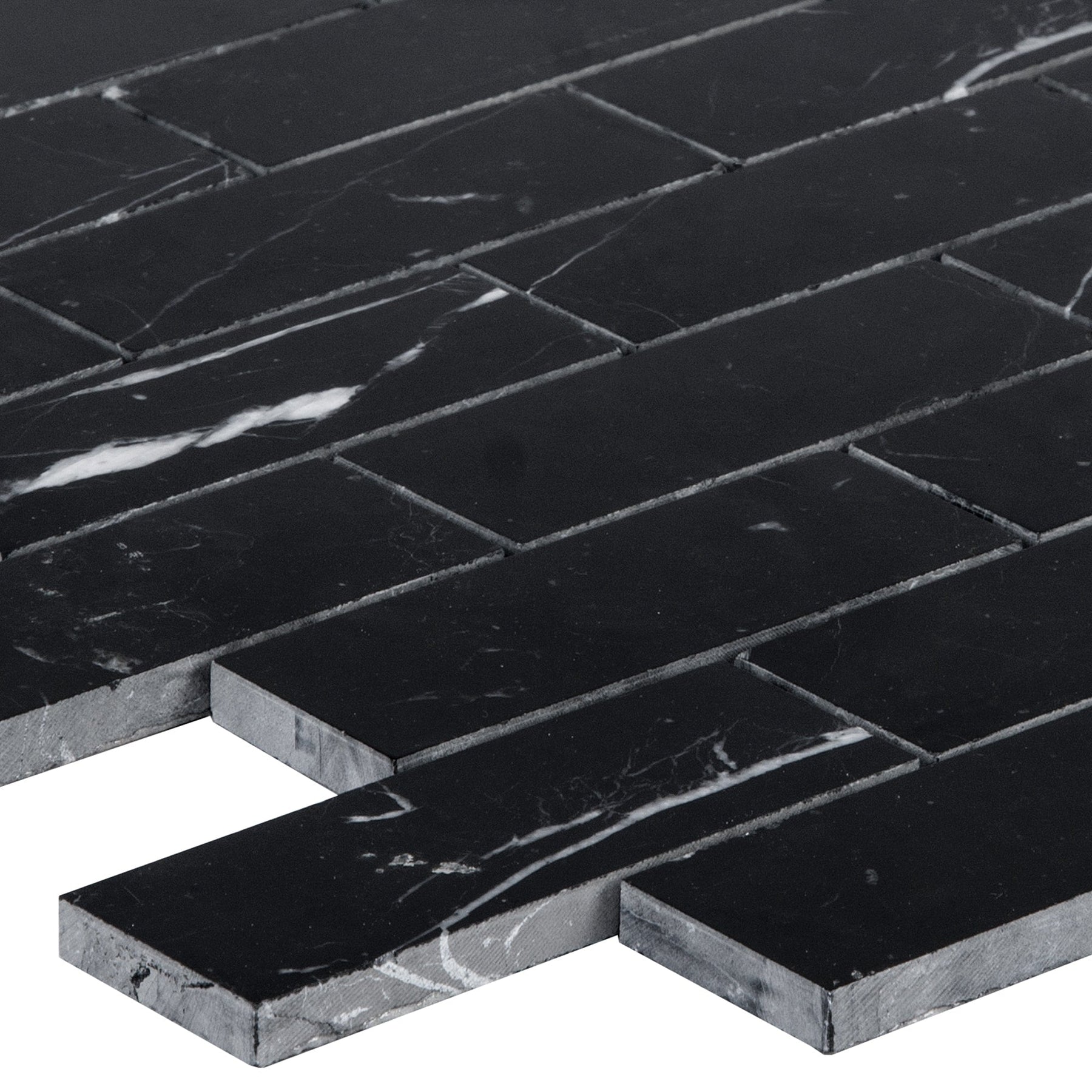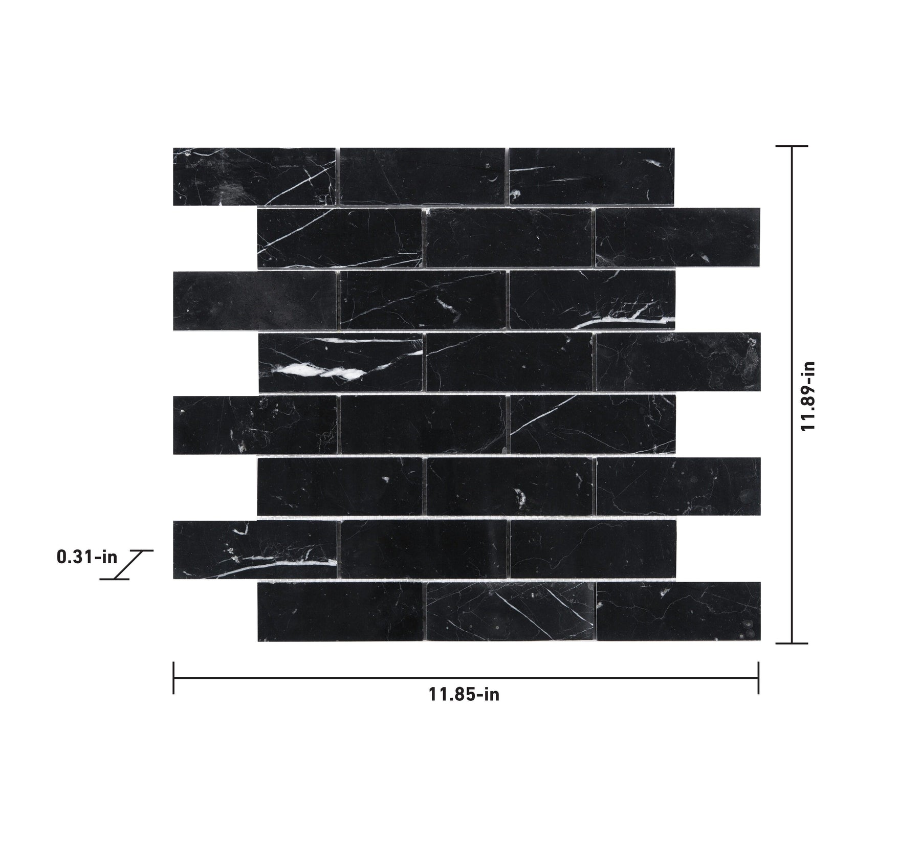Elevate your interior spaces with the Satori Nero 12-in x 12-in Polished Natural Stone Marble Look Mosaic Wall Tile. Designed to mimic the luxurious look of marble, this tile features a polished finish and elegant black hue to bring timeless sophistication to any kitchen or bathroom project.