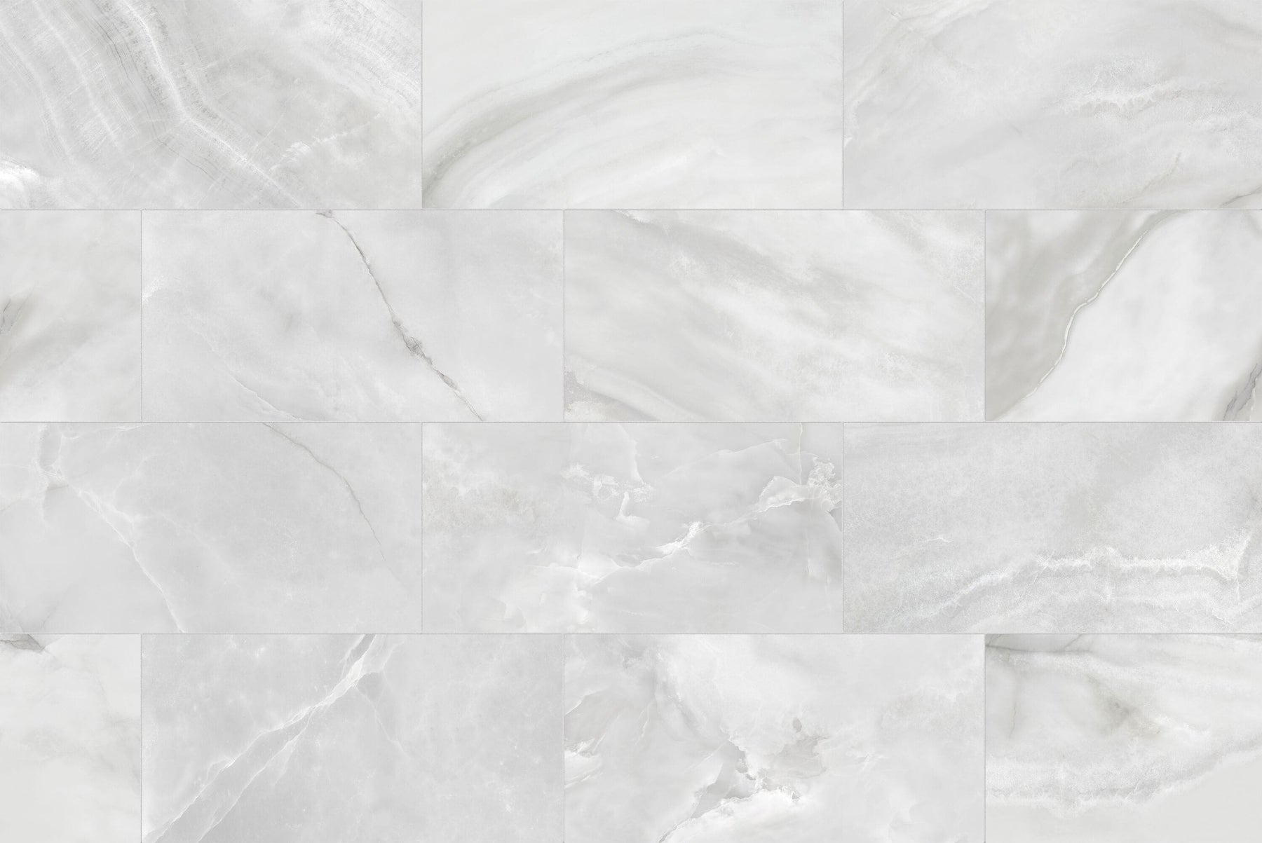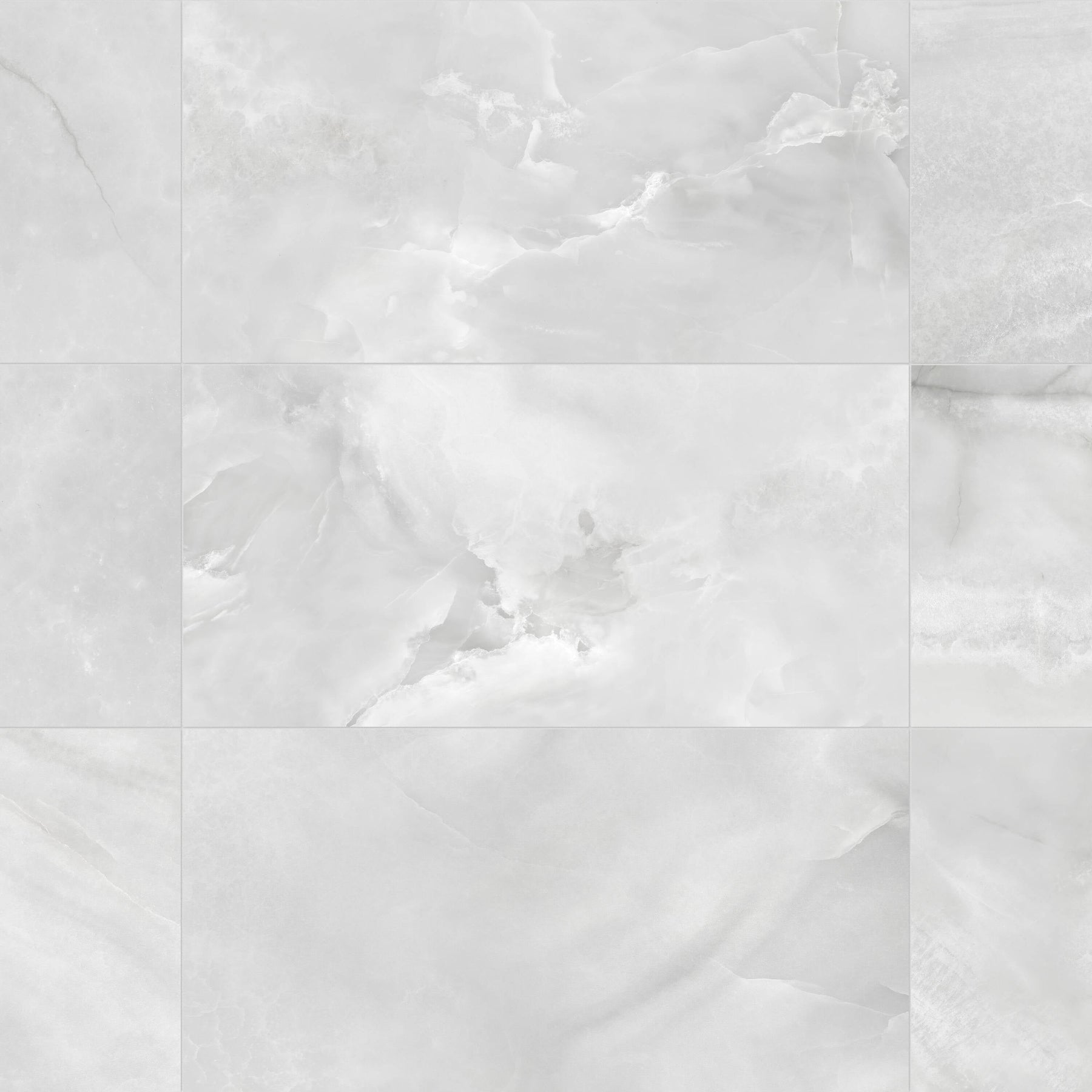 Transform your spaces with the timeless elegance of Satori Onyx Luna polished porcelain tiles. These tiles offer the refined look of marble with the high durability and low maintenance of porcelain, making them an ideal choice for both walls and floors in high-traffic areas.