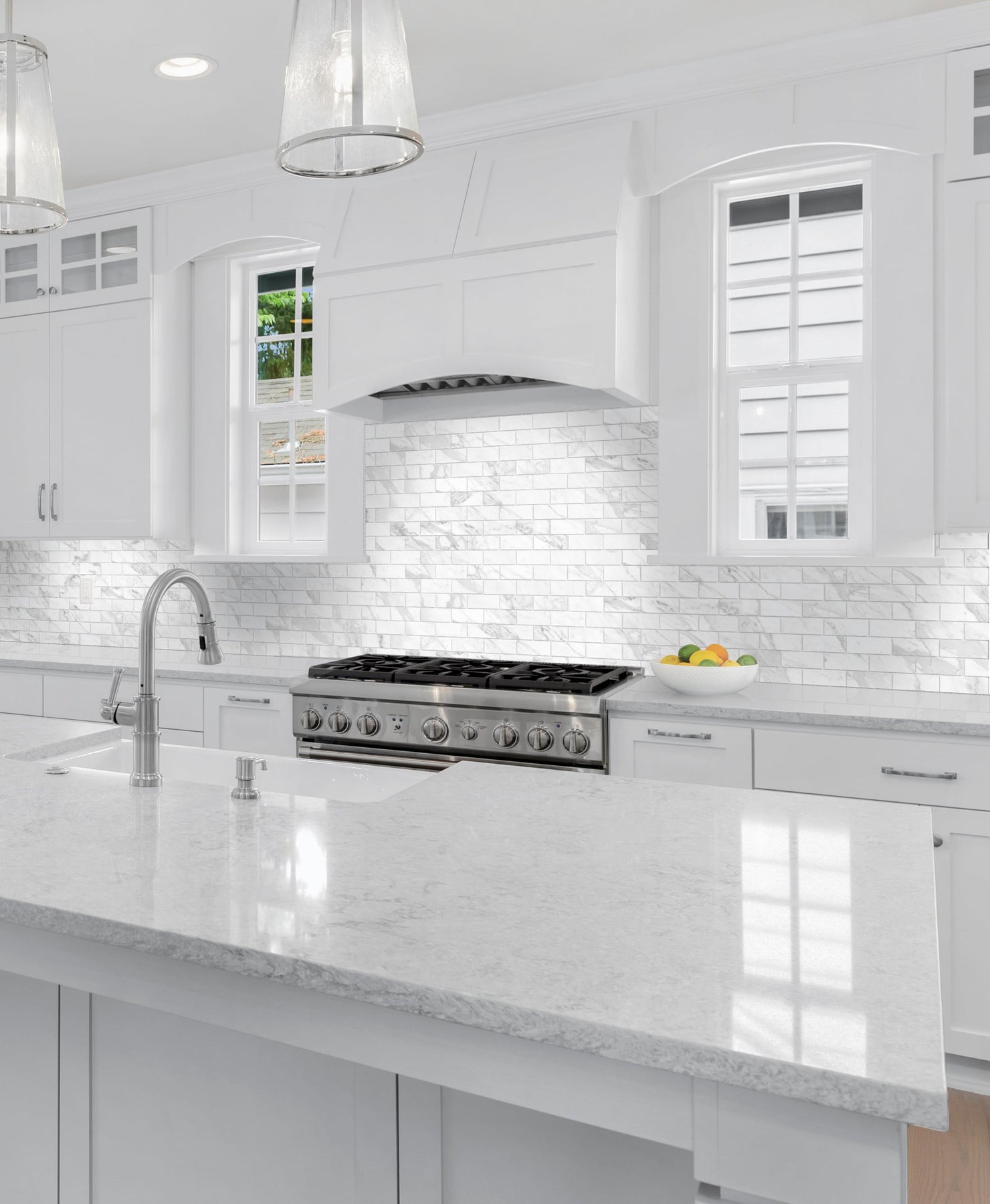 • Design: Matte Carrara marble look complements any decor—contemporary or traditional