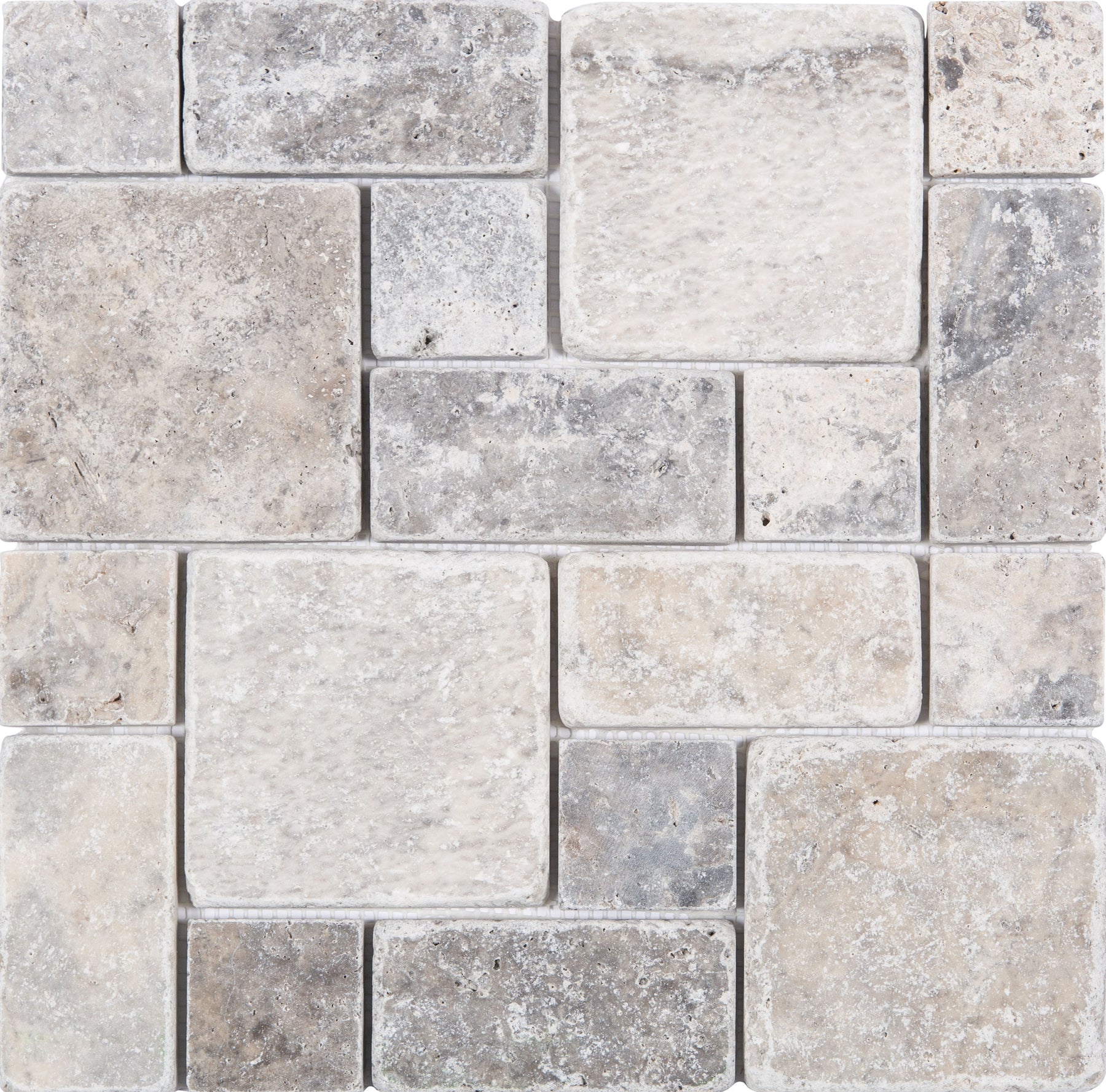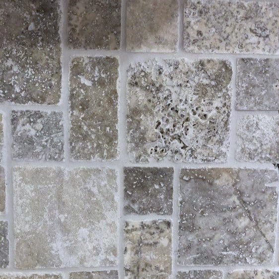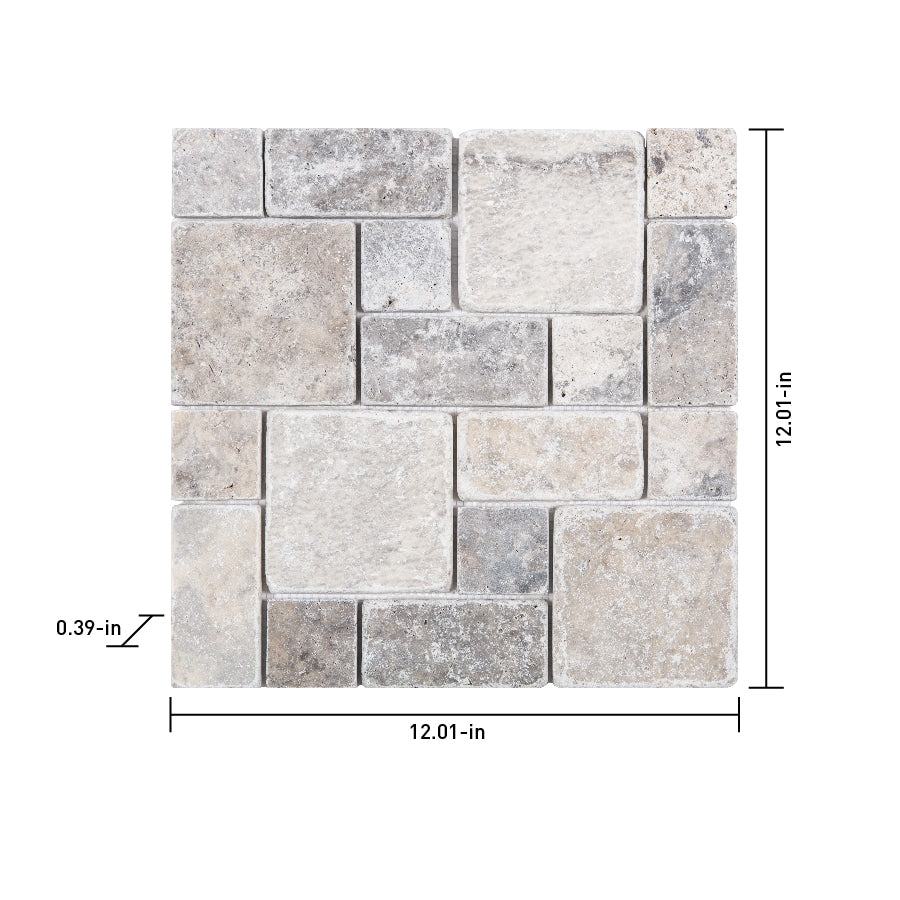 Satori Silver Crescent 12-in x 12-in Honed Travertine Versailles Stone-Look Mosaic Wall Tile, 1-sq ft Piece