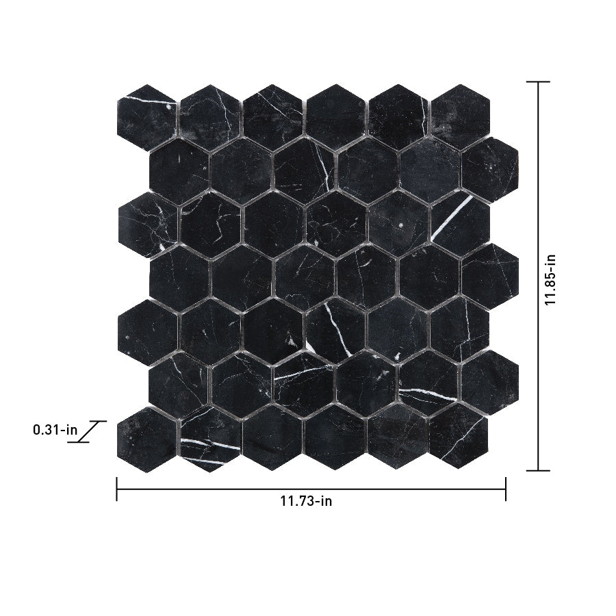 Satori Nero 12-in x 12-in Polished Natural Stone Marble Look Hexagon Mosaic Wall Tile (0.96-sq. ft/ Piece)