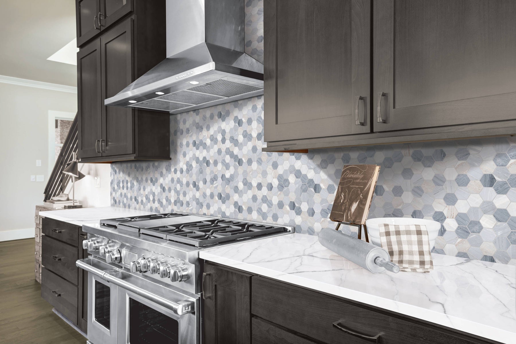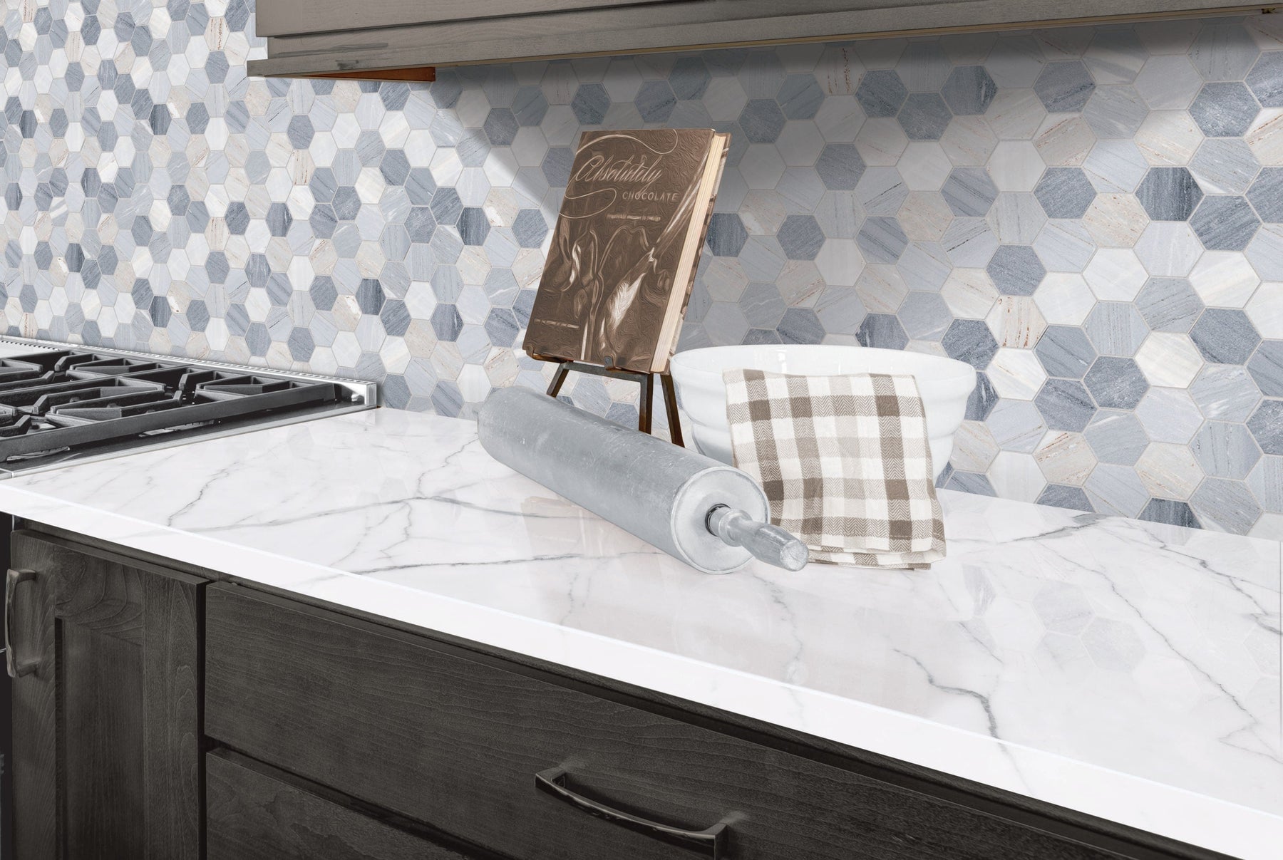 - Hexagon Pattern: Rectified edges allow for thinner grout lines for a seamless look.