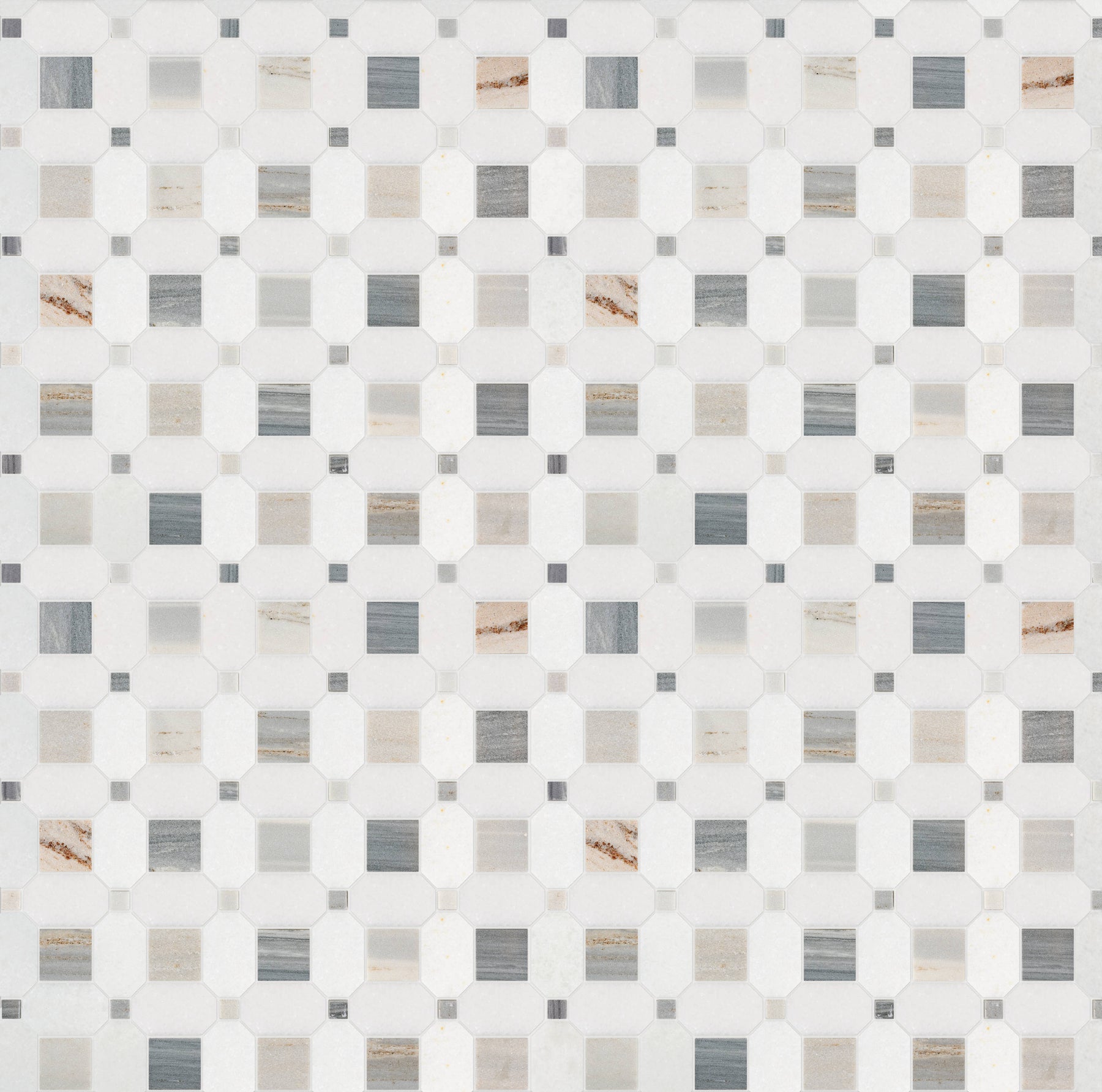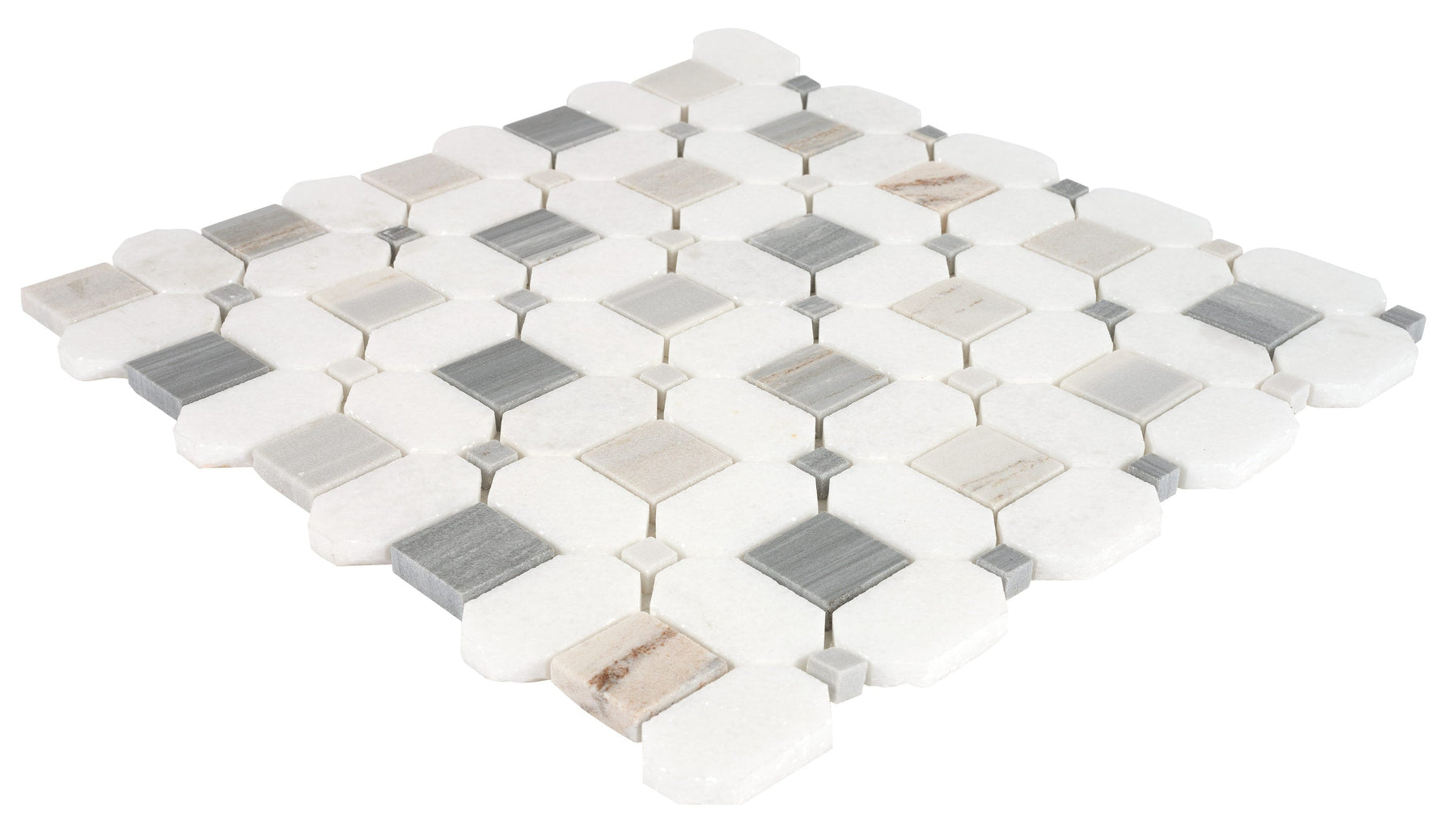 Elevate your interiors with the Satori Palissandro Thassos Mosaic Tile, offering a sophisticated natural stone look with a polished finish. Ideal for medium to heavy traffic areas, these tiles bring a luminous shine and subtle blue-gray hues, perfect for adding a touch of elegance to any space.