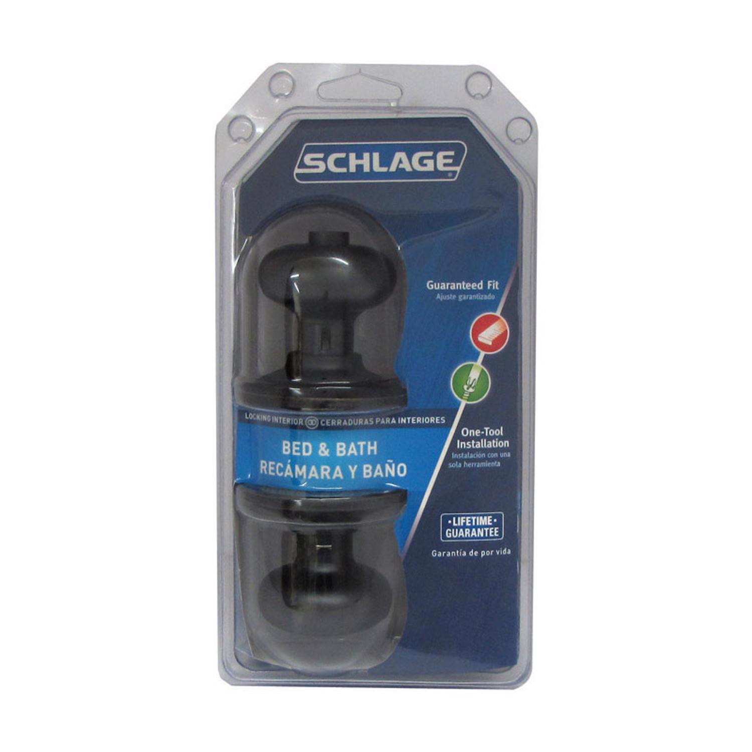 A classic Plymouth privacy knob from Schlage in Aged Bronze, built for bedroom and bathroom doors. ANSI Grade 2 security with push-button locking and easy, one-tool installation fits standard pre-drilled doors.