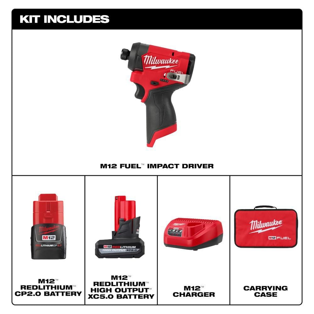 M12 FUEL 12V Compact 1/4 in. Hex Impact Driver Kit + 25pc Bit Set