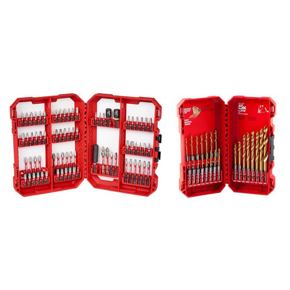 Milwaukee SHOCKWAVE Impact Duty Alloy Steel Screwdriver Bit Set + RED HELIX Titanium Drill Bit Set with PACKOUT Case (97-Piece)
