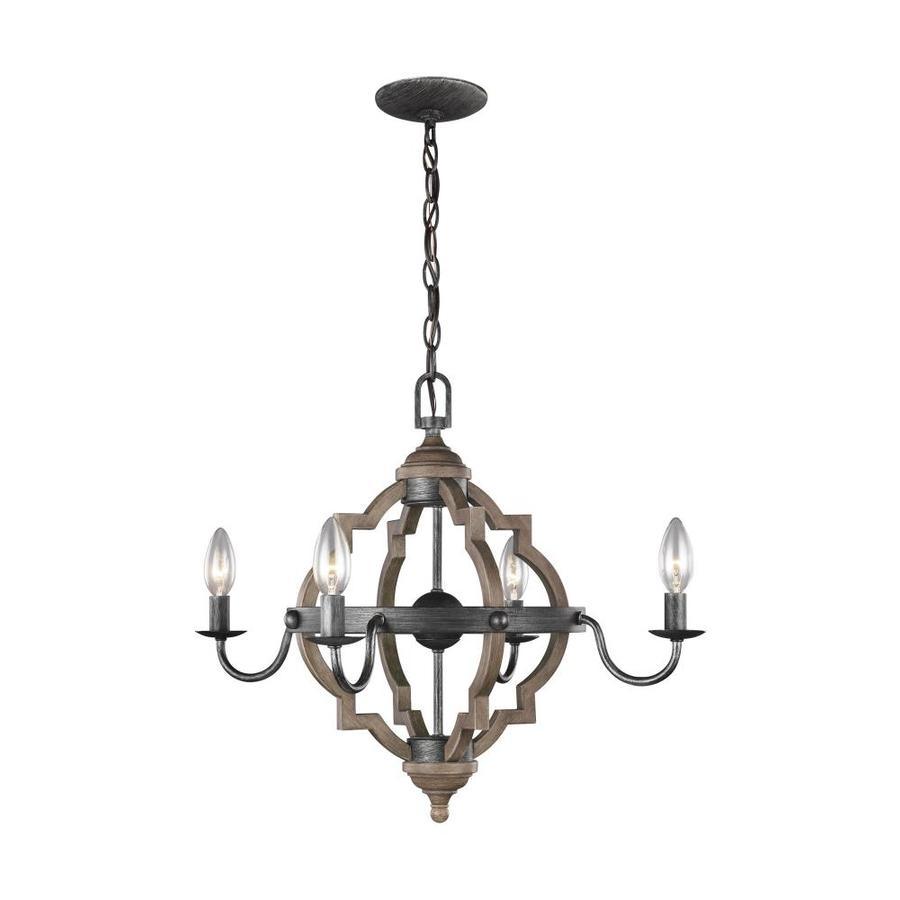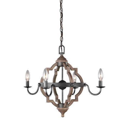 Sea Gull Lighting Socorro 22 in. W. 4-Light Weathered Gray and Distressed Oak Chandelier