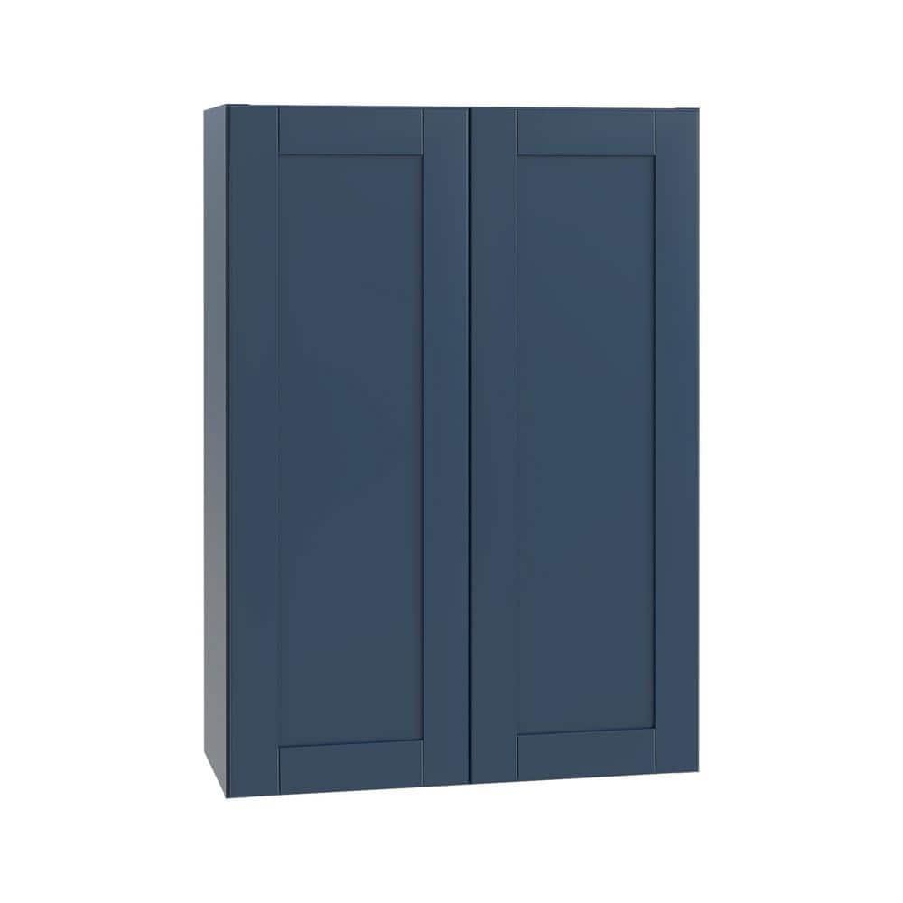 Contractor Express Cabinets Arlington Vessel Blue Plywood Shaker Stock Assembled Wall Kitchen Cabinet Soft Close 27 in W x 12 in D x 36 in H