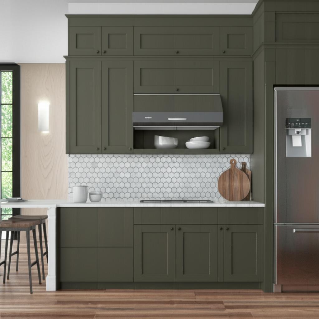 The Hampton Bay Avondale Shaker Wall Kitchen Cabinet in Fern Green combines timeless design with modern functionality. Featuring durable plywood construction, soft-close doors, and adjustable shelves, it offers a stylish and practical solution for kitchen storage.