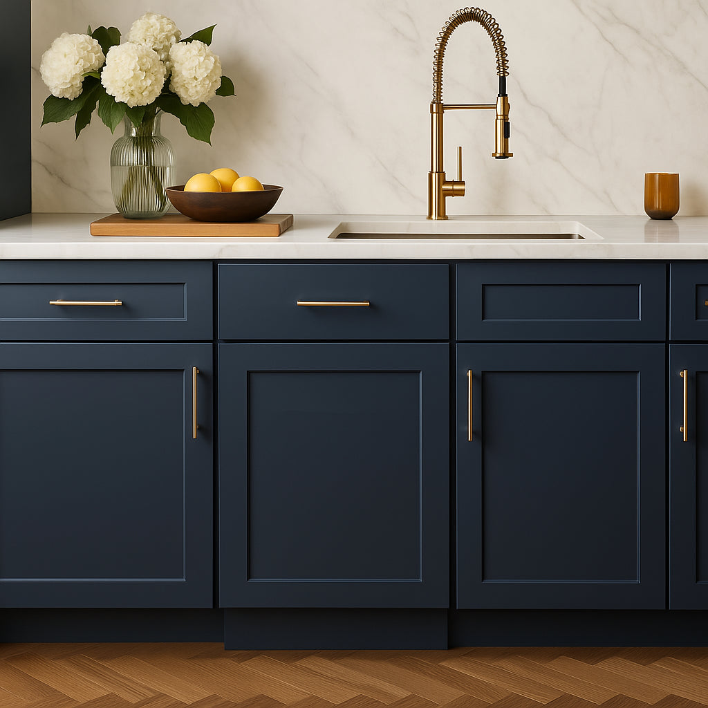 The Hampton Bay Avondale Shaker Base Kitchen Cabinet combines quick assembly technology with durable plywood construction for a stylish and functional addition to your kitchen. Its ink blue finish and shaker-style design offer a modern aesthetic, while soft-close features ensure smooth operation.