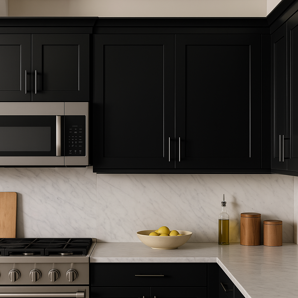 The Hampton Bay Avondale Shaker Wall Kitchen Cabinet combines style and functionality with its Raven Black finish and durable plywood construction. Featuring soft-close doors and adjustable shelves, this cabinet is perfect for organizing kitchen essentials while adding a touch of elegance.