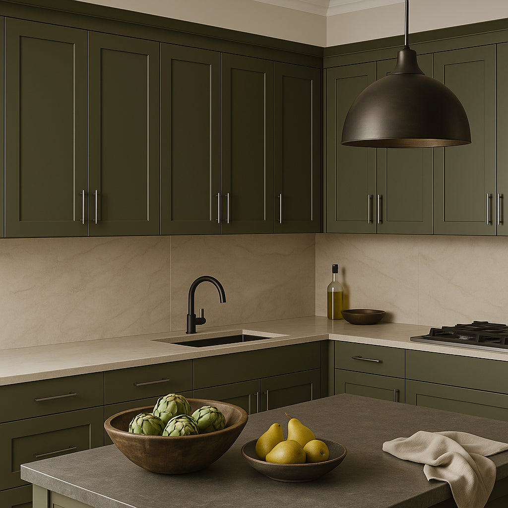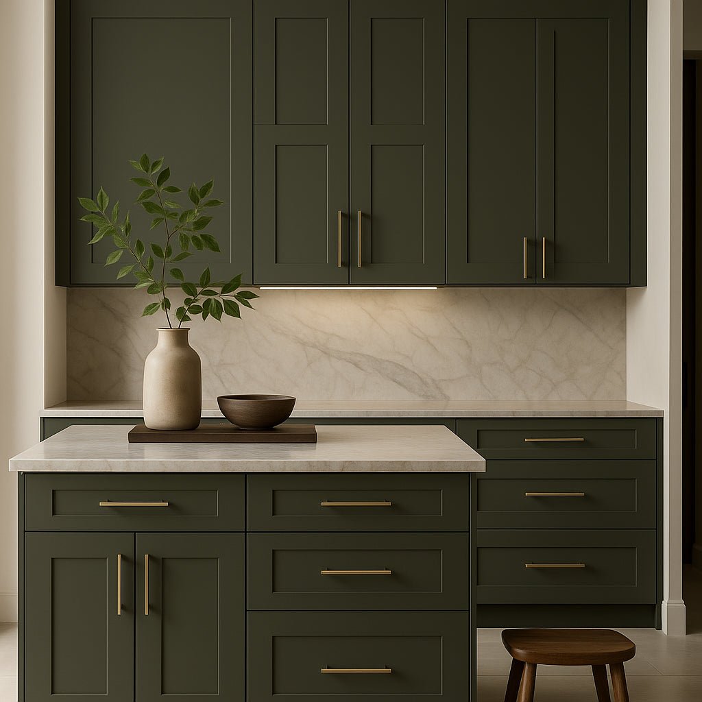• Stylish Design: Shaker-style doors in a rich Fern Green color.