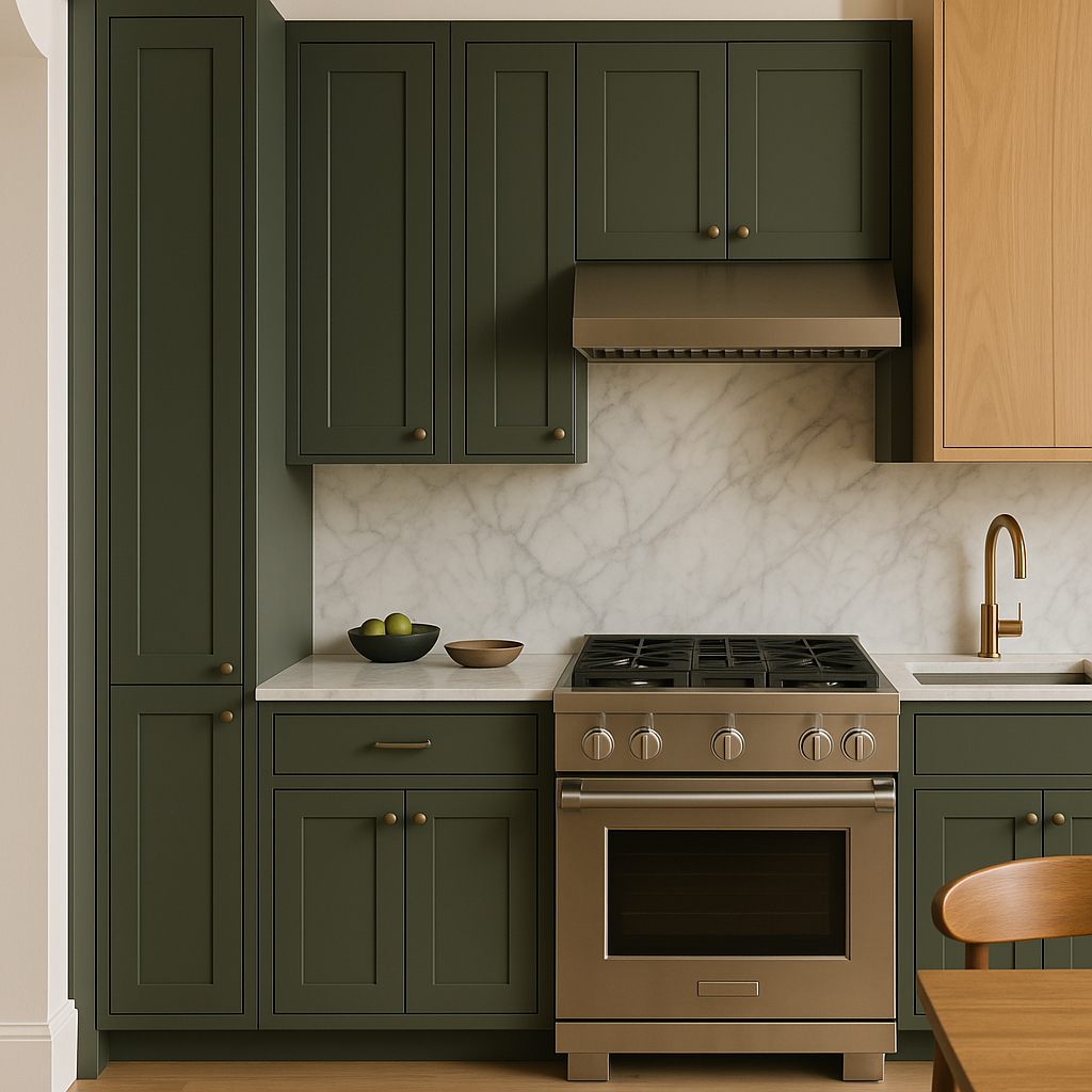 The Hampton Bay Avondale Shaker Wall Kitchen Cabinet in Fern Green combines style and functionality with its durable plywood construction and soft-close doors. Its adjustable shelves and painted finish make it a versatile and elegant addition to any kitchen.
