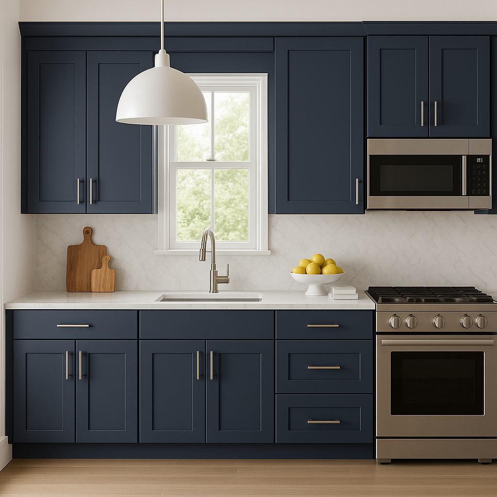 The Hampton Bay Avondale Shaker Cabinet in Ink Blue is a masterpiece of modern design and functionality. Its rich, painted finish and shaker-style doors bring a touch of sophistication to any kitchen. Pair it with stainless steel appliances and white countertops for a striking contrast, or use it to complement a cozy, rustic aesthetic. This cabinet is not just storage; it's a statement piece that transforms your space into a haven of style and practicality.