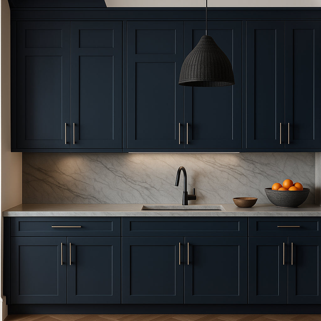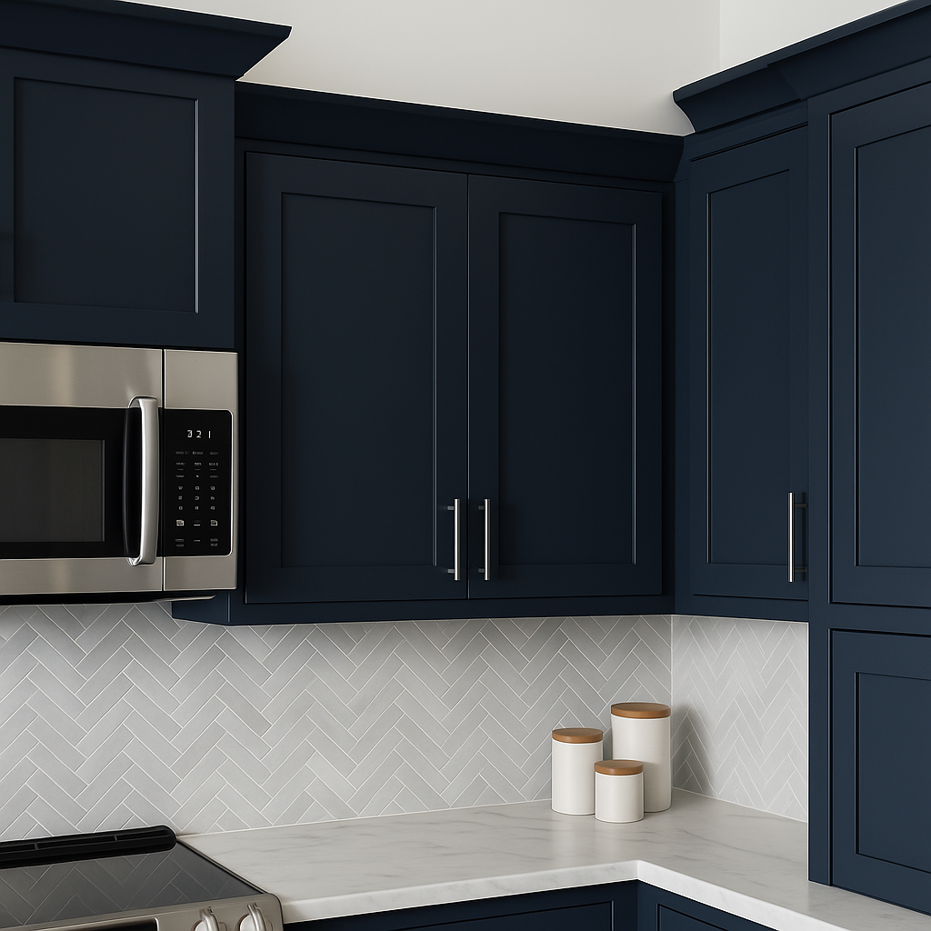 The Hampton Bay Avondale Shaker Wall Kitchen Cabinet in Ink Blue combines style and functionality with its durable plywood construction and adjustable shelves. Its soft-close doors and painted finish make it a perfect addition to modern kitchens.