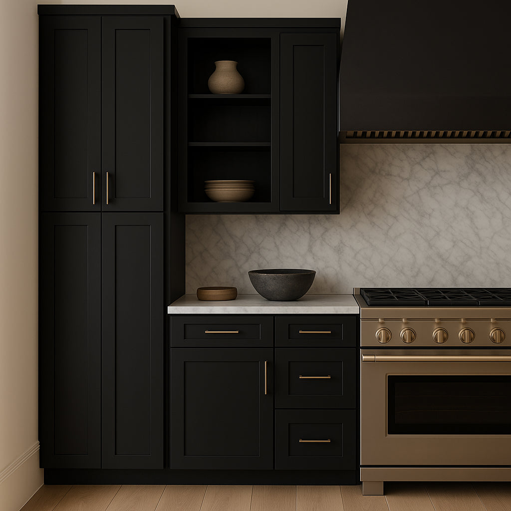 The Hampton Bay Avondale Shaker Wall Kitchen Cabinet in Raven Black combines timeless shaker styling with modern functionality. Featuring durable plywood construction and a premium painted finish, this cabinet offers adjustable shelves and soft-close doors for a seamless kitchen experience.