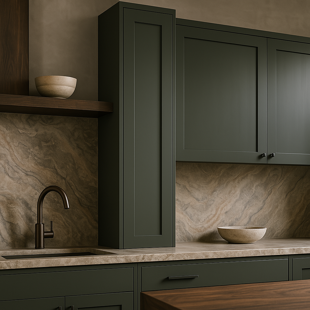 - Shaker Style: Traditional shaker design in a sophisticated green finish.