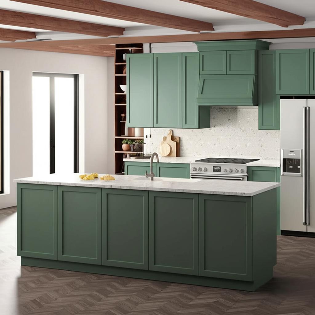 The Hampton Bay Designer Series Melvern Shaker Base Cabinet in Forest combines elegant design with practical functionality. Featuring soft-close hinges, durable materials, and a water-resistant finish, this cabinet is perfect for modern kitchens.