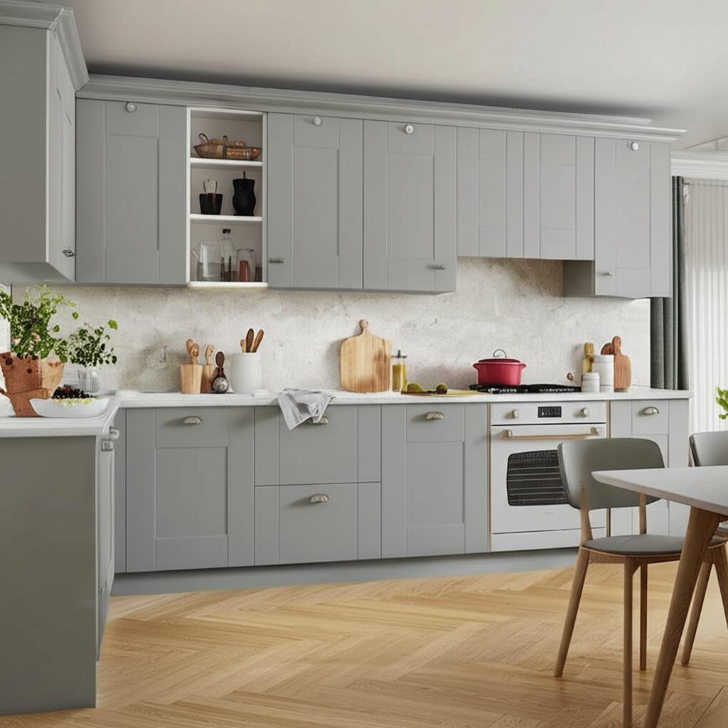 - Elegant Design: Shaker-style door with a sleek Dove Gray thermofoil finish for a modern look.