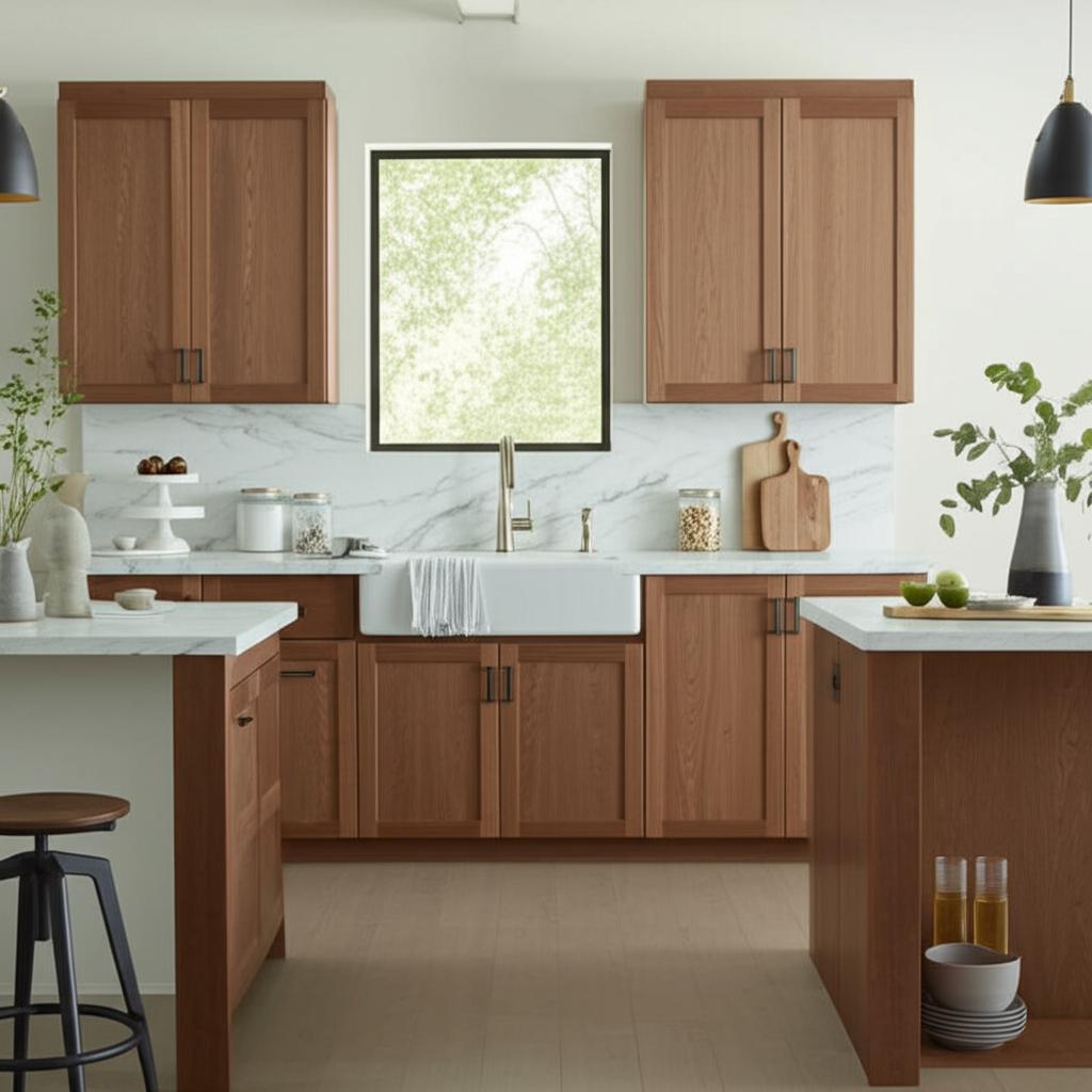 The Hampton Bay Sinclair Wall Kitchen Cabinet combines timeless Shaker style with a rich Saddle Oak finish, offering a durable furniture-quality construction and adjustable shelves for versatile storage. Preassembled for easy installation, this cabinet is a perfect blend of functionality and elegance.