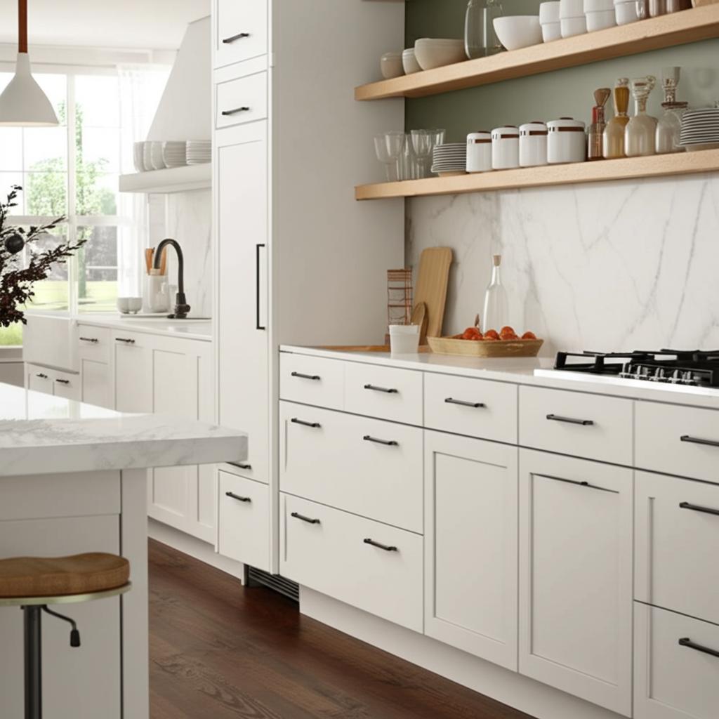 • Full-Overlay Style: Classic Shaker doors with 2.25-inch rails and stiles for a modern look.