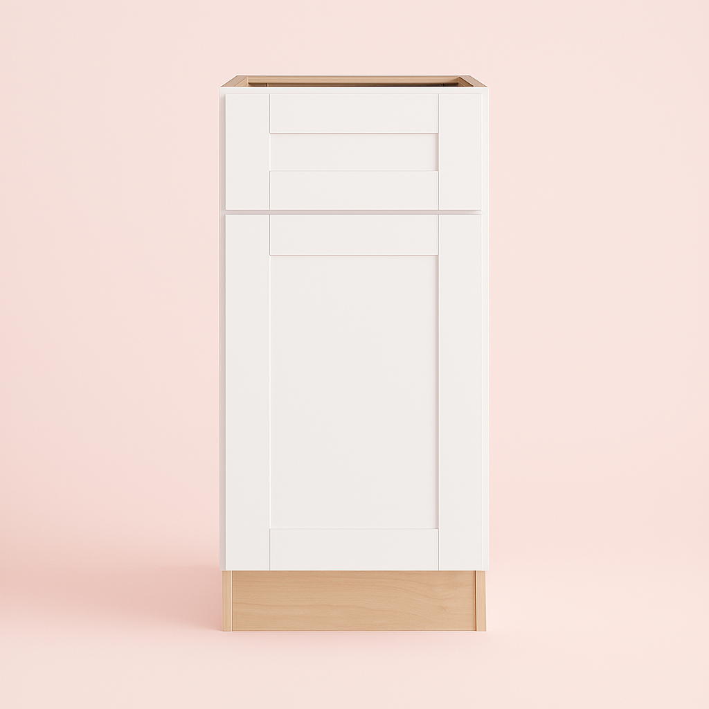 Transform your kitchen into a haven of style and sophistication with the Vesper White Shaker Kitchen Base Cabinet. Its sleek vinyl clad finish exudes a breezy elegance, effortlessly complementing both modern and classic decor. Adorned with shaker-style doors, this cabinet sets the perfect backdrop for a marble countertop and stainless-steel accessories. Essential for luxurious living, it brings a touch of refinement that elevates every culinary experience.