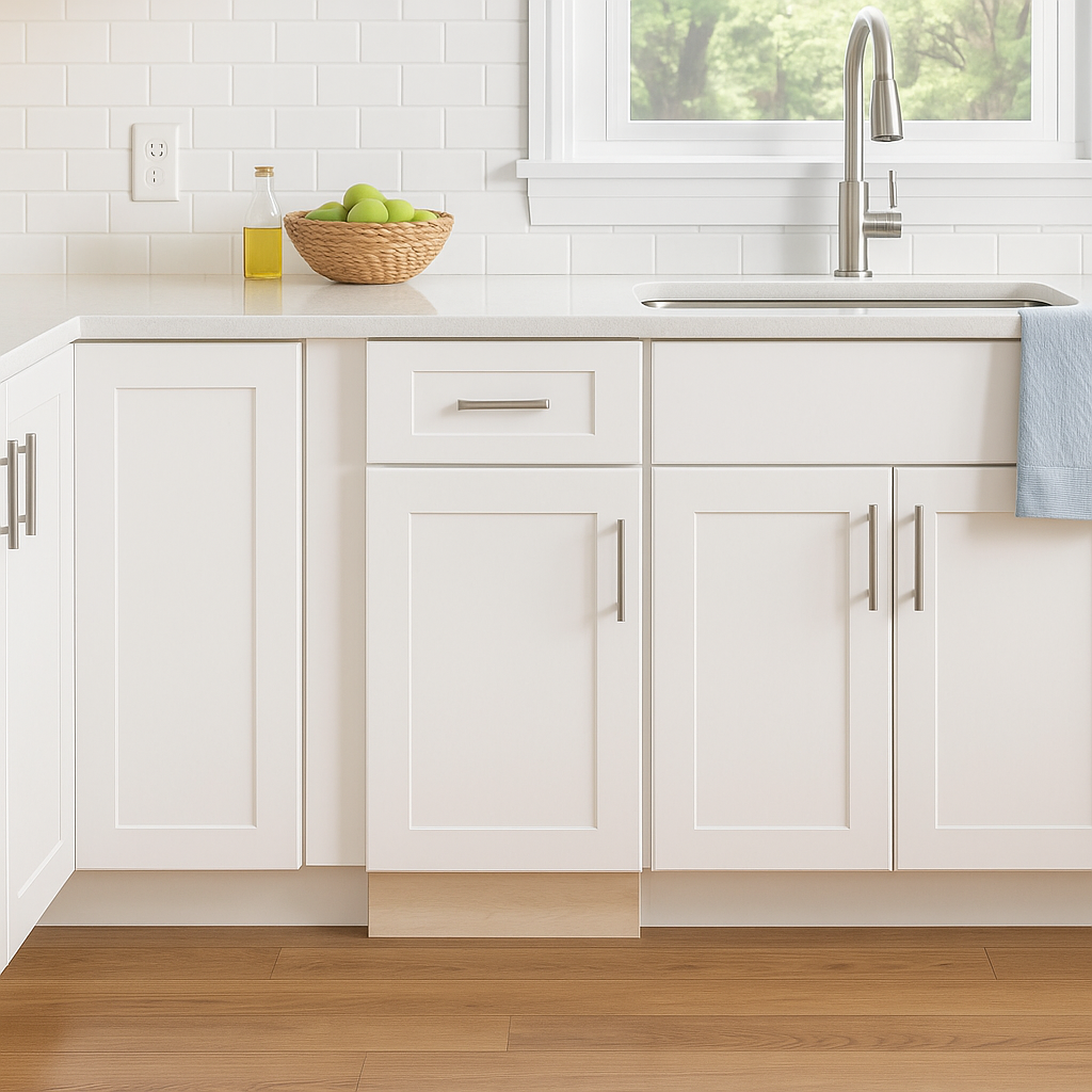 • Elegant Design: Features wide, shaker-style doors with a fashionable recessed center panel, perfect for contemporary kitchens.