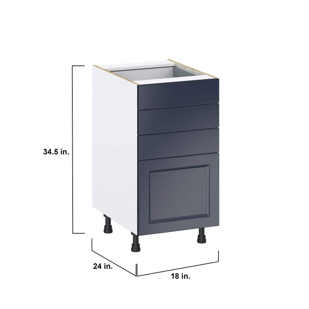 J COLLECTION 18 in. W x 24 in. D x 34.5 in. H Devon Painted Blue Shaker Assembled Base Kitchen Cabinet with 4-Drawers