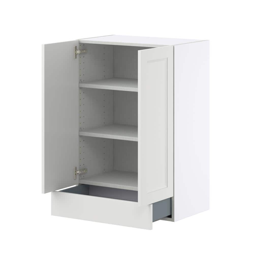 Revamp your kitchen with the Alton Painted White Shaker Wall Kitchen Cabinet by J COLLECTION. This fully-assembled cabinet features a frameless construction for a sleek, accessible design paired with a white finish that complements any kitchen style. With soft-close drawer technology and versatile spaciousness, it's engineered for both style and long-lasting performance.