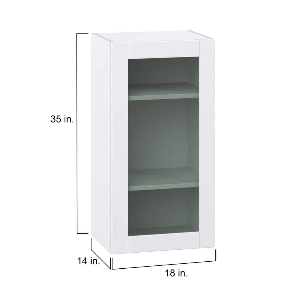 J COLLECTION Bright White Shaker Assembled Wall Kitchen Cabinet with Glass Door (18 in. W x 35 in. H x 14 in. D)