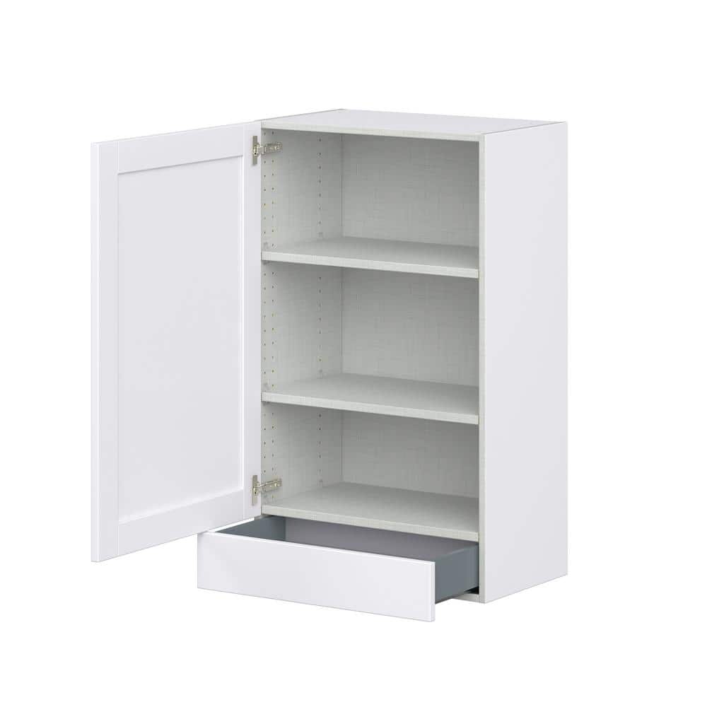 J COLLECTION Mancos 24 in. W x 40 in. H x 14 in. D Bright White Shaker Assembled Wall Kitchen Cabinet with 1-Draw