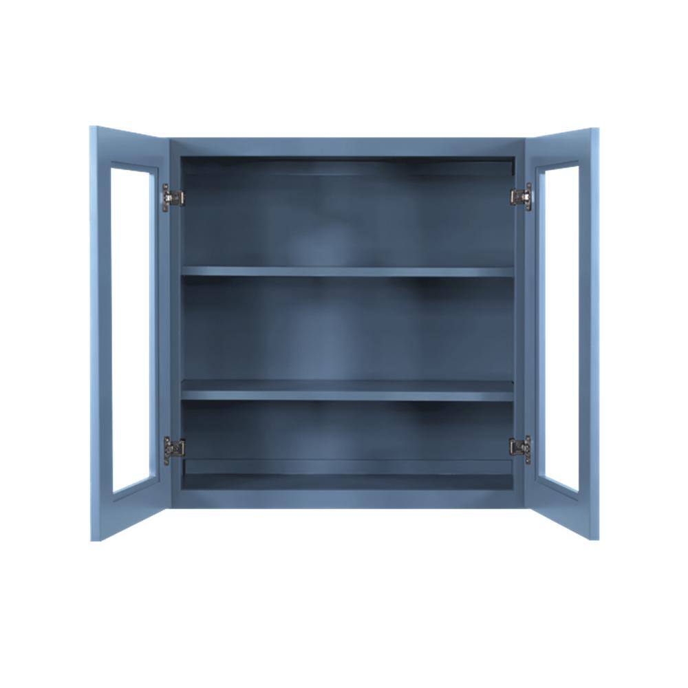 LIFEART CABINETRY Lancaster Blue Plywood Shaker Stock Assembled Wall Glass-Door Kitchen Cabinet 27 in. W x 12 in. D x 30 in. H