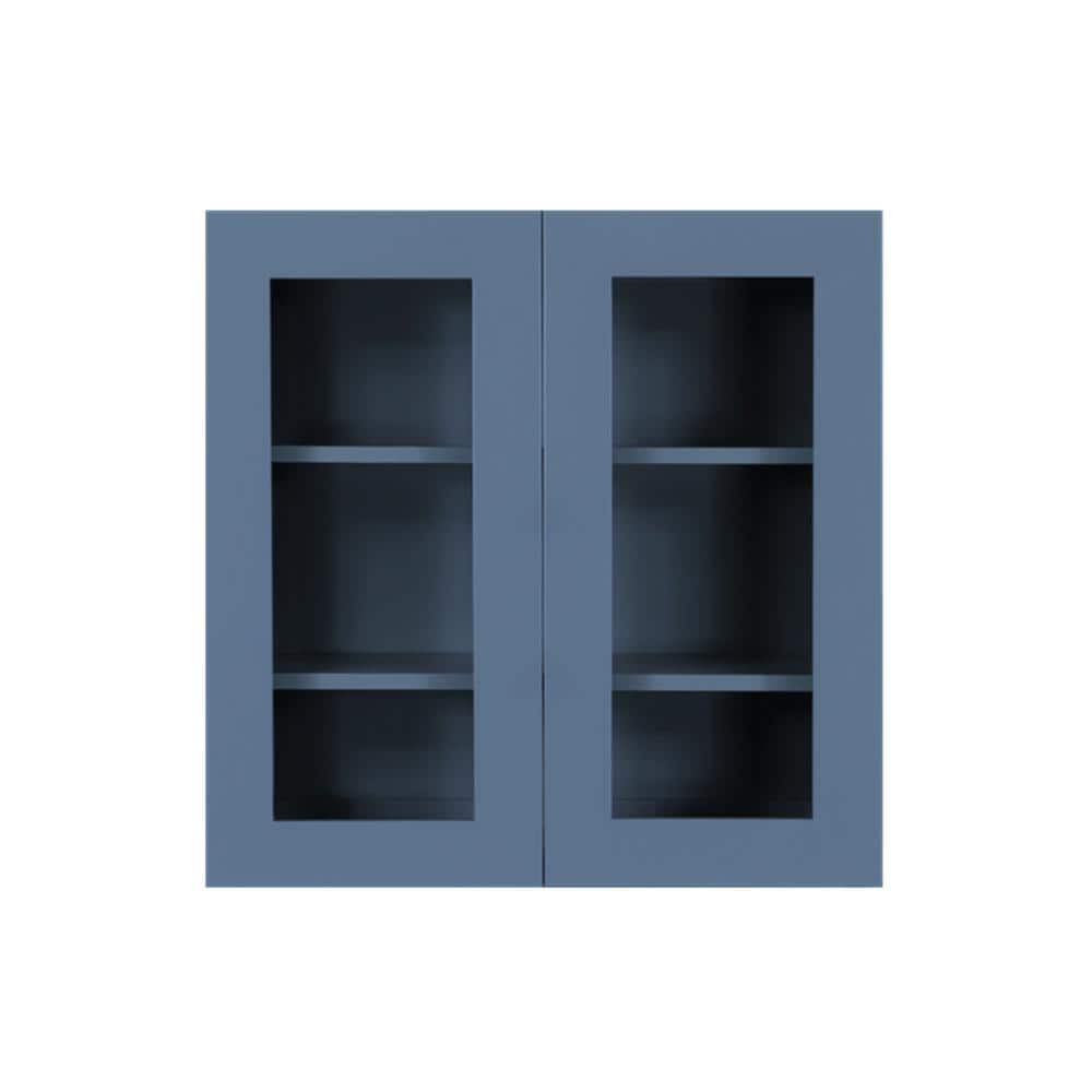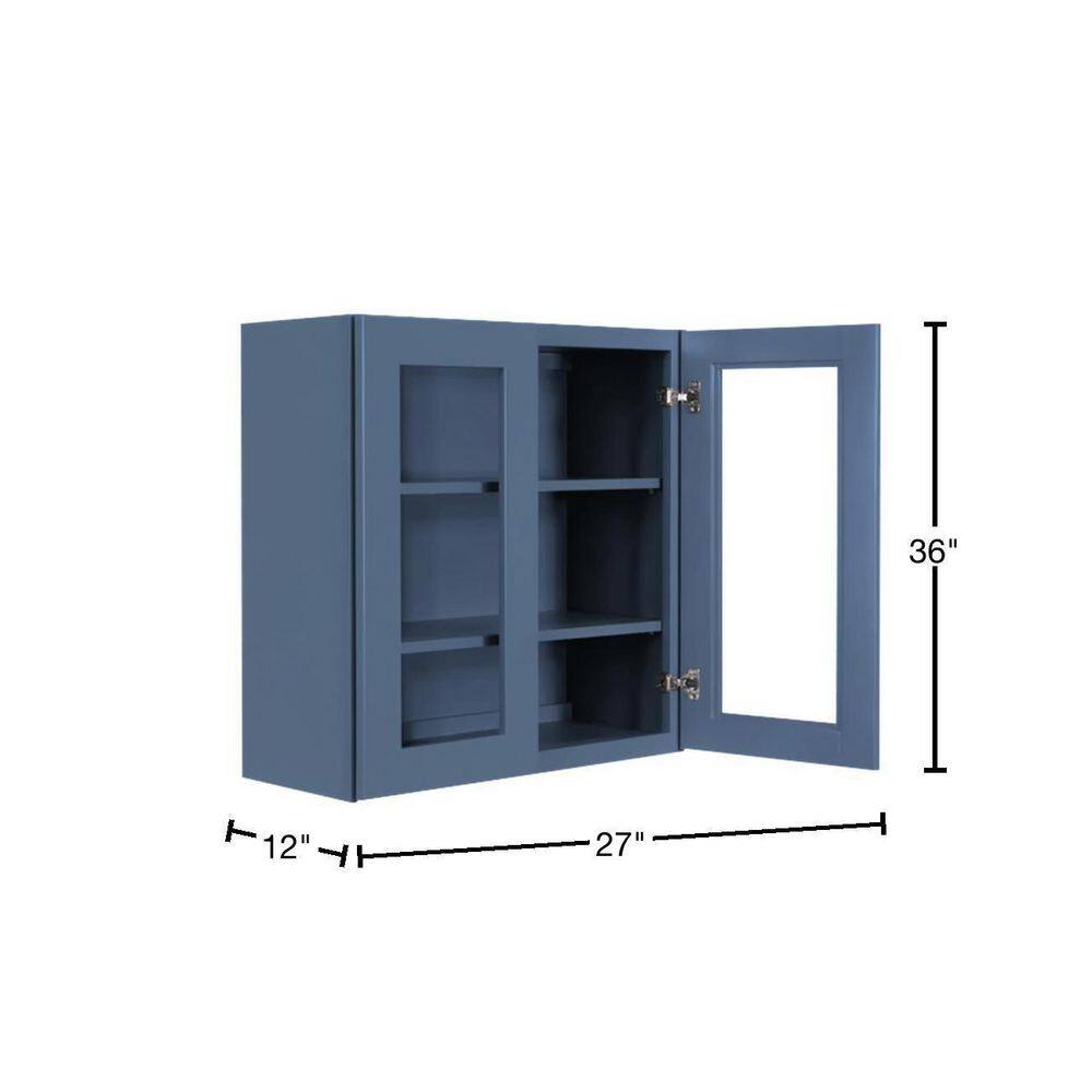 LIFEART CABINETRY Lancaster Blue Plywood Shaker Stock Assembled Wall Glass-Door Kitchen Cabinet 27 in. W x 12 in. D x 36 in. H