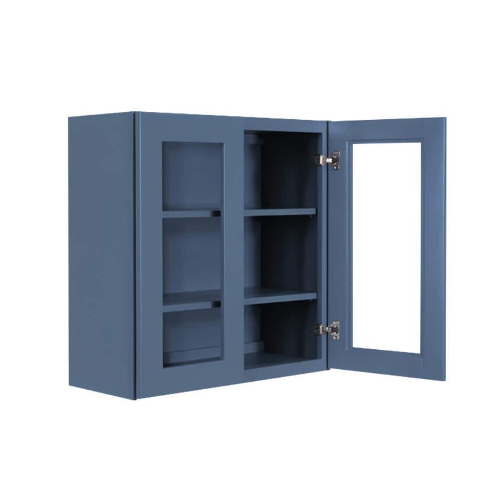 LIFEART CABINETRY Lancaster Blue Plywood Shaker Stock Assembled Wall Glass-Door Kitchen Cabinet 36 in. W x 12 in. D x 36 in. H