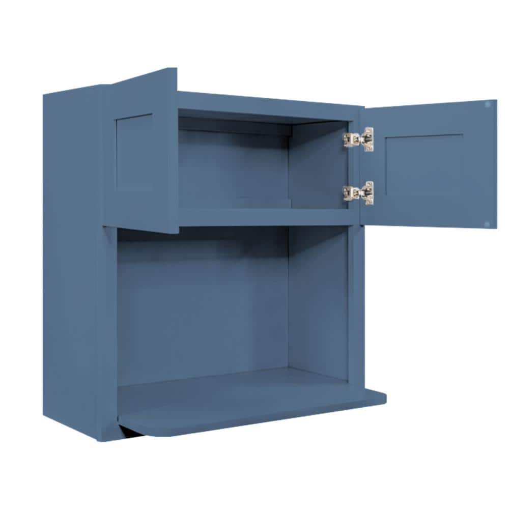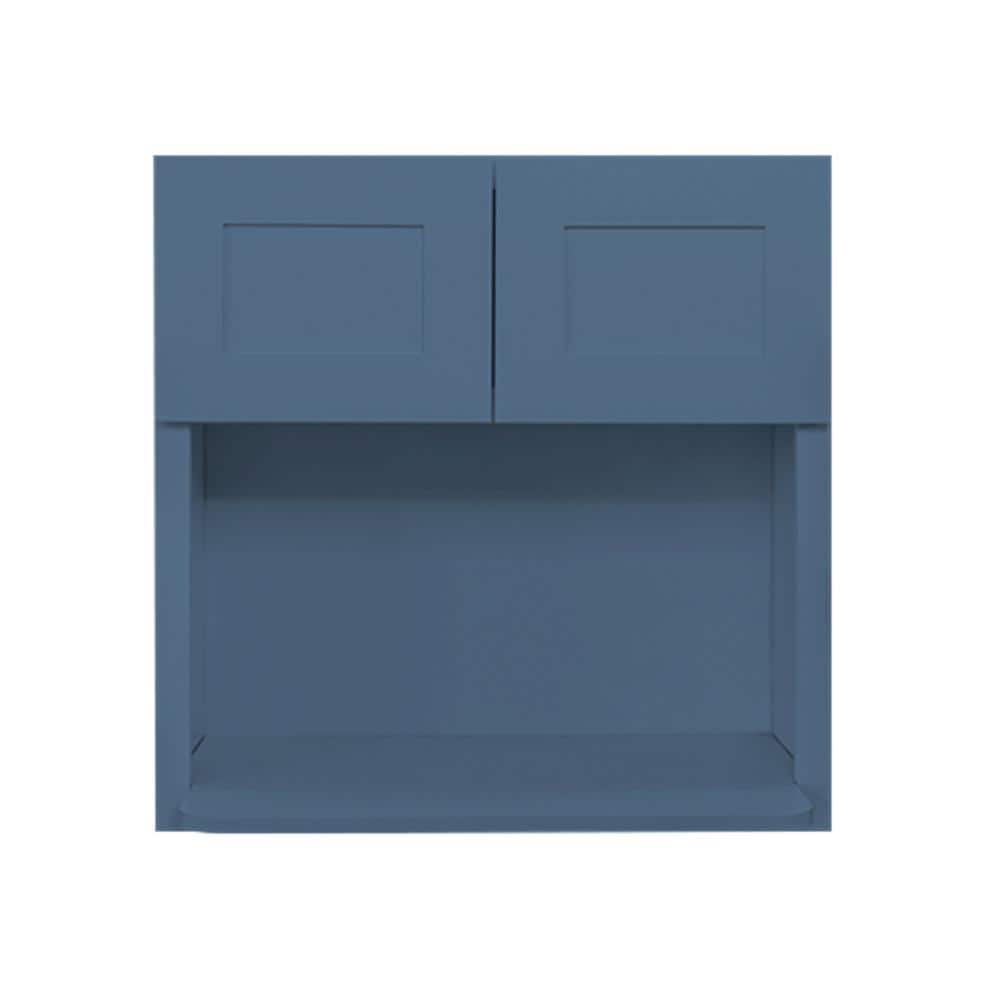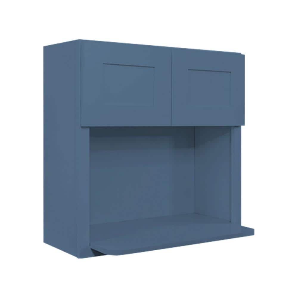 LIFEART CABINETRY Lancaster Blue Plywood Shaker Stock Assembled Wall Microwave Kitchen Cabinet 30 in. W x 42 in. D H x 12 in. D