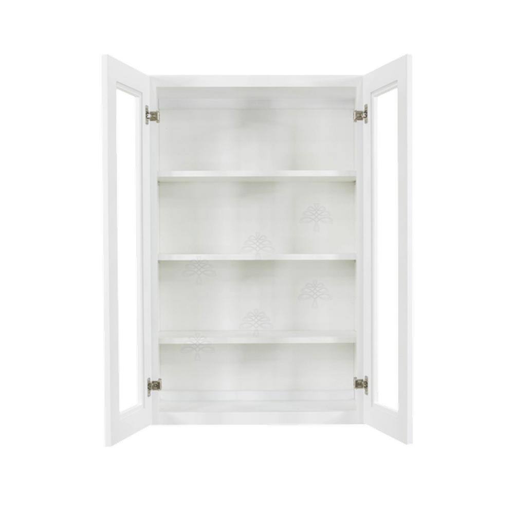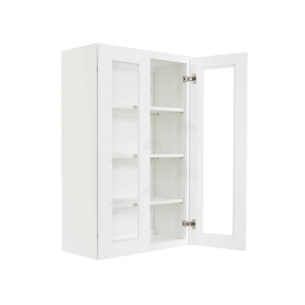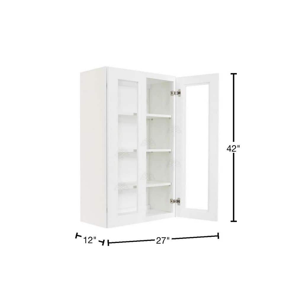 LIFEART CABINETRY Lancaster White Plywood Shaker Stock Assembled Wall Glass Door Kitchen Cabinet 27 in. W x 42 in. H x 12 in. D
