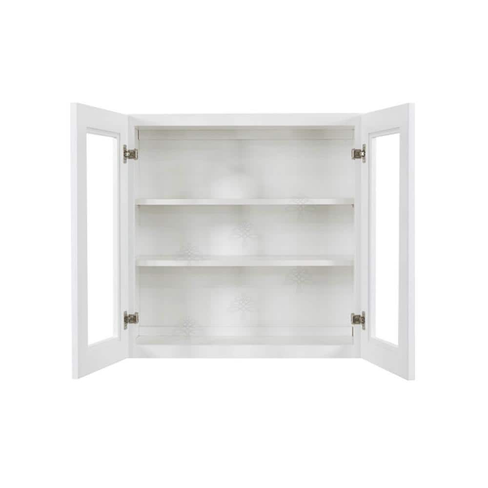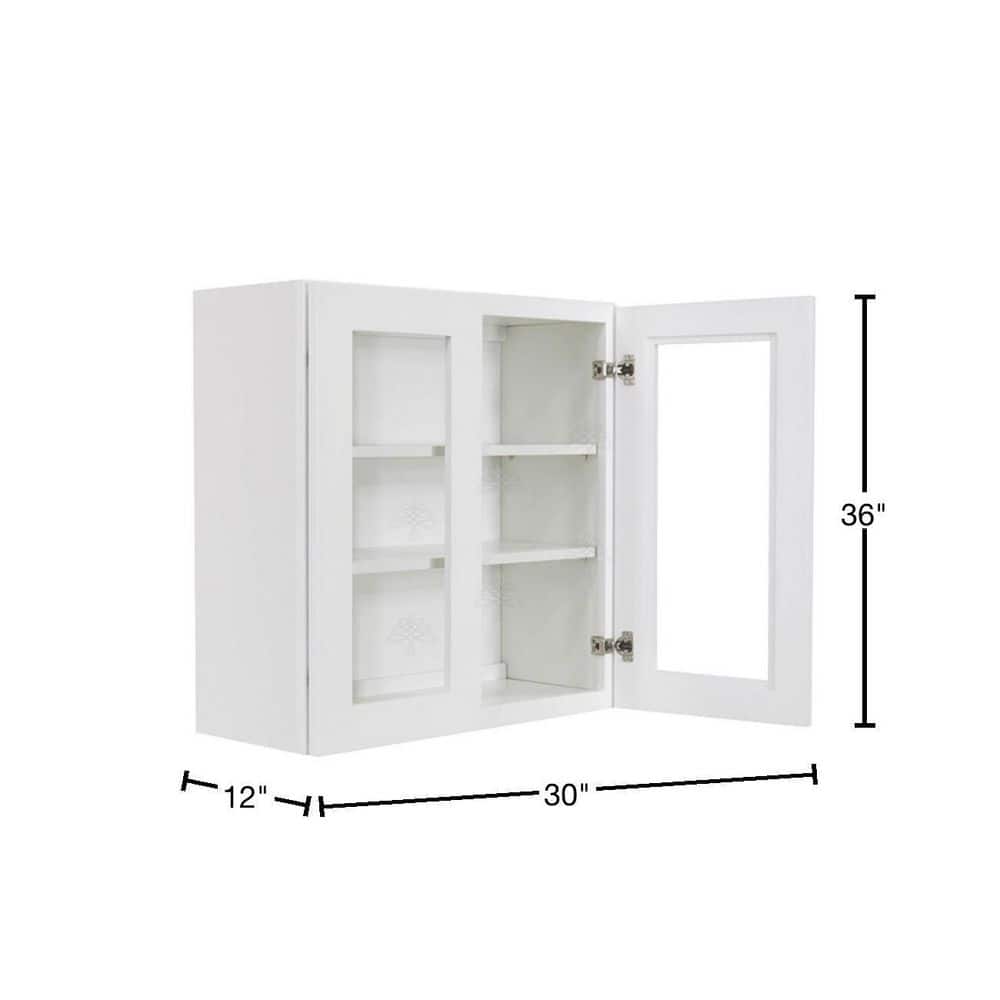 LIFEART CABINETRY Lancaster White Plywood Shaker Stock Assembled Wall Glass Door Kitchen Cabinet 30 in. W x 36 in. H x 12 in. D