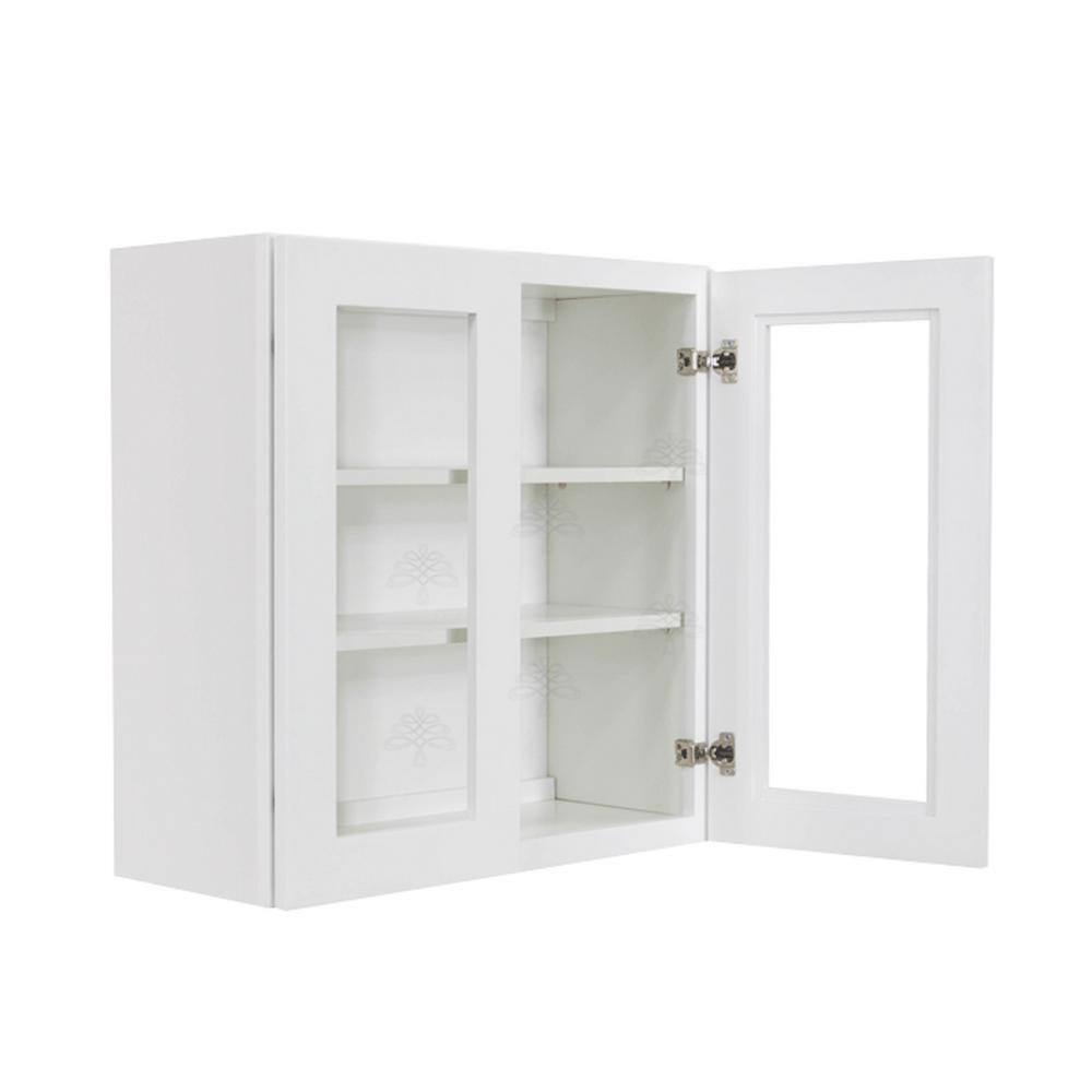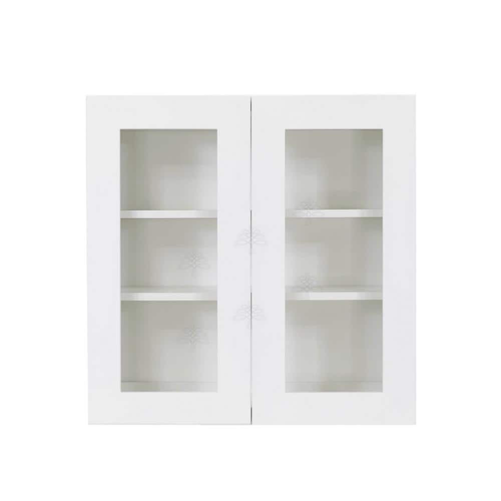 LIFEART CABINETRY Lancaster White Plywood Shaker Stock Assembled Wall Glass Door Kitchen Cabinet 33 in. W x 30 in. H x 12 in. D
