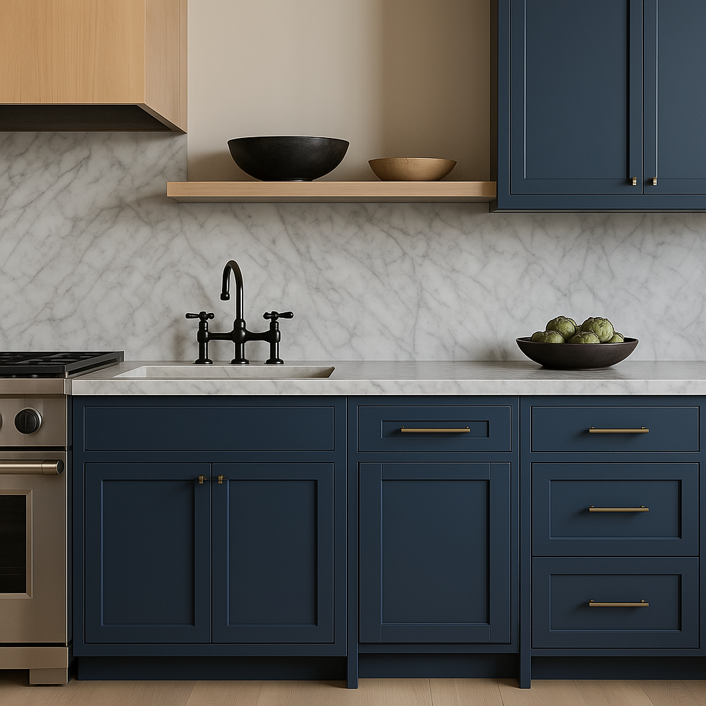 Upgrade your kitchen with the stylish and durable Valencia Blue Shaker Base Cabinet today!