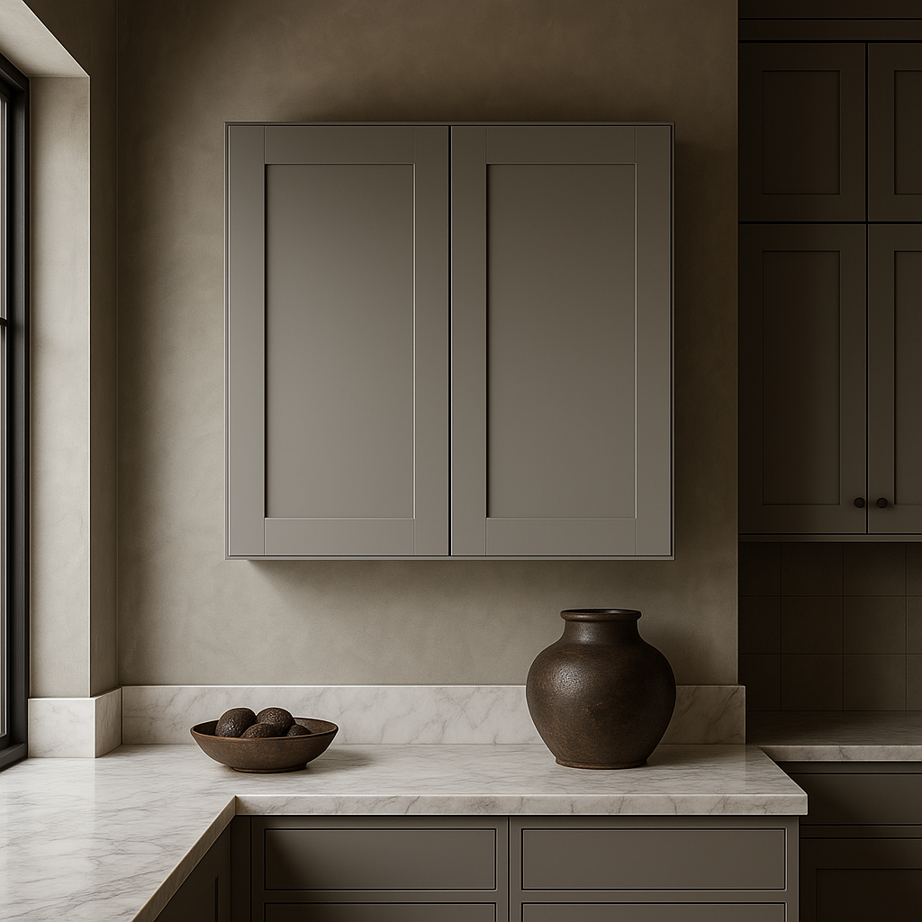 The Richmond Vesuvius Gray Wall Kitchen Cabinet by MILL'S PRIDE combines durable plywood construction with a stylish shaker design. Featuring soft-close doors and adjustable shelves, this cabinet is perfect for modern kitchens.